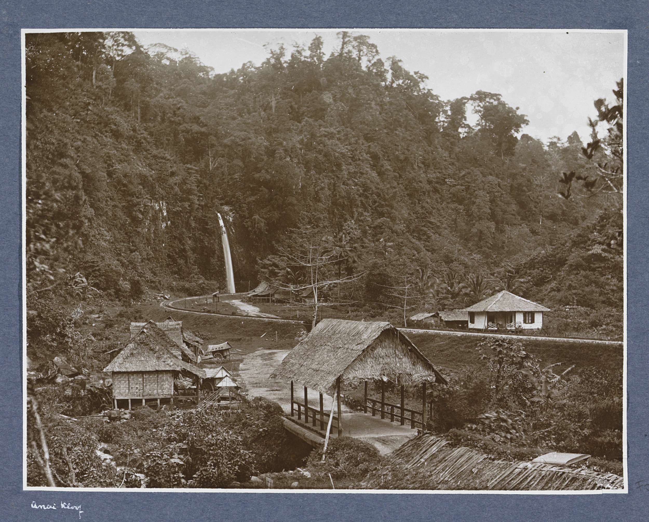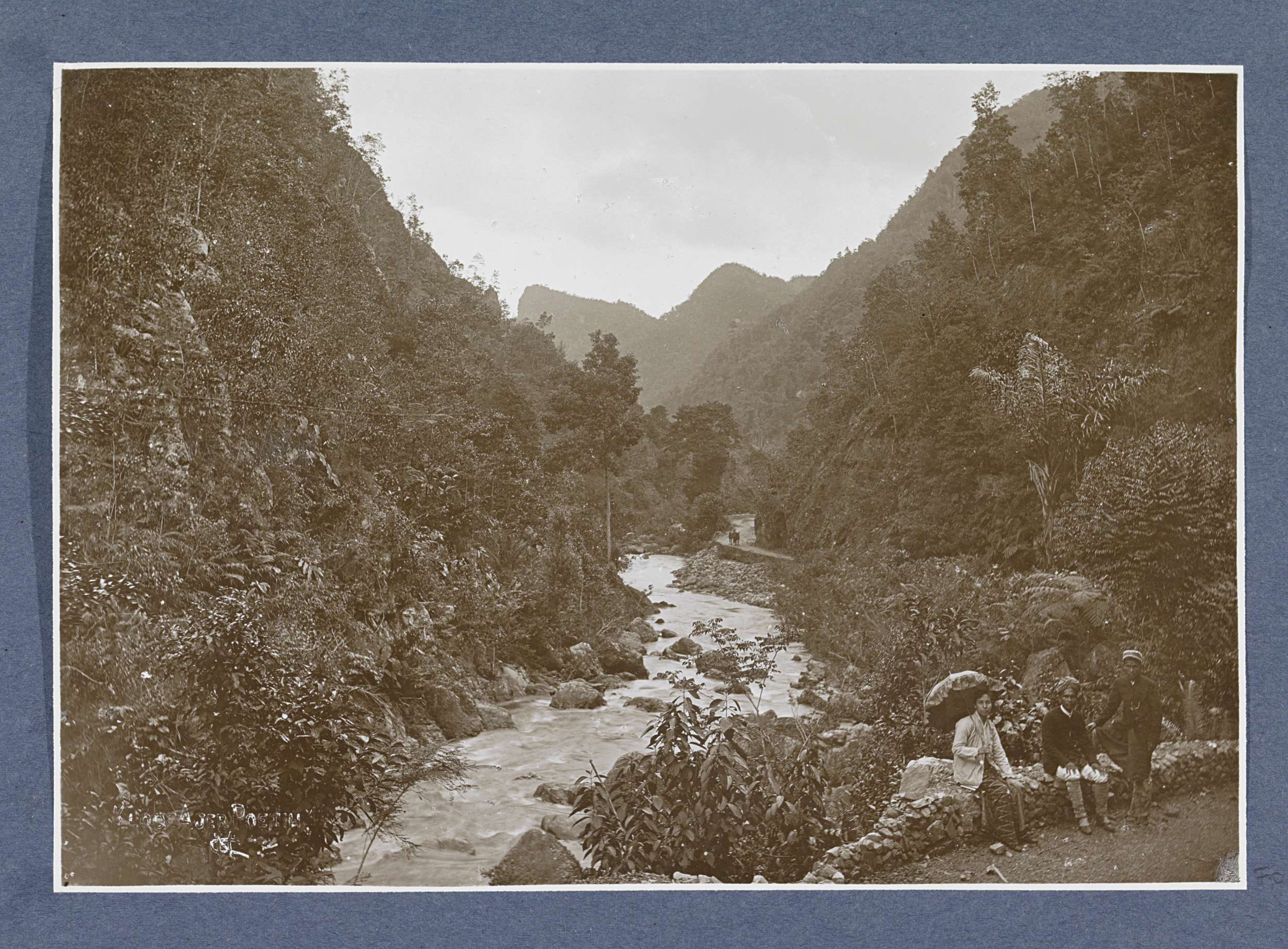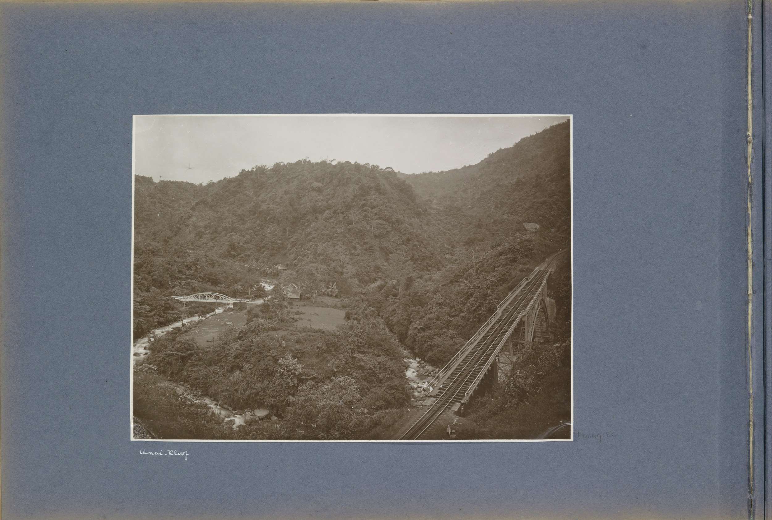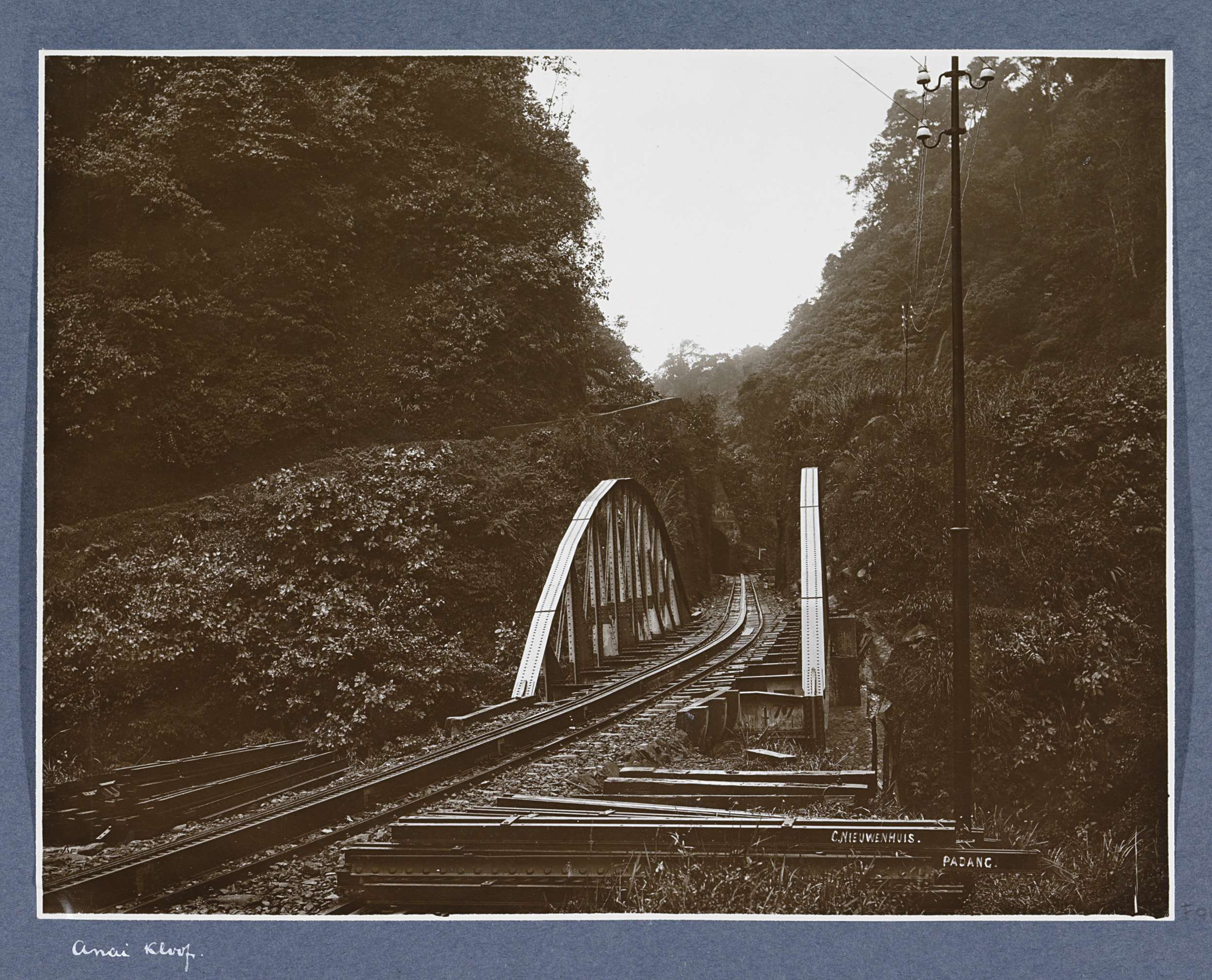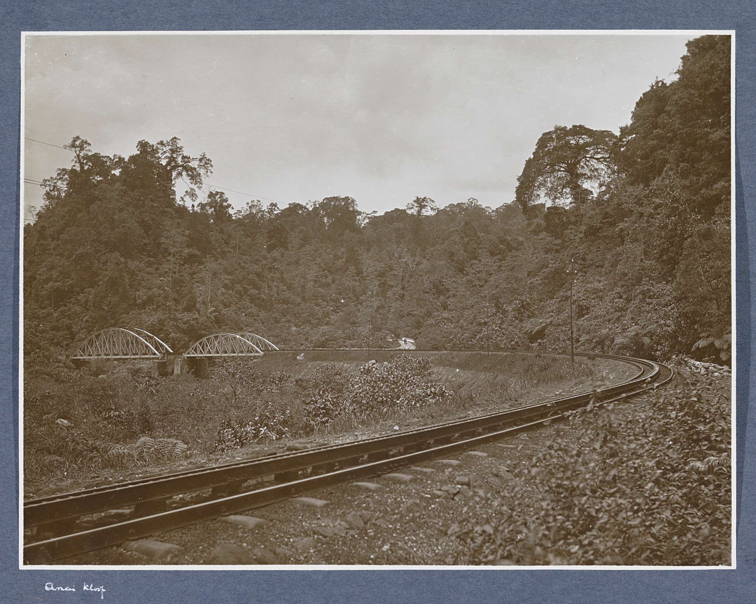 Gezicht op de Anaikloof op Sumatra met spoorweg, bru...