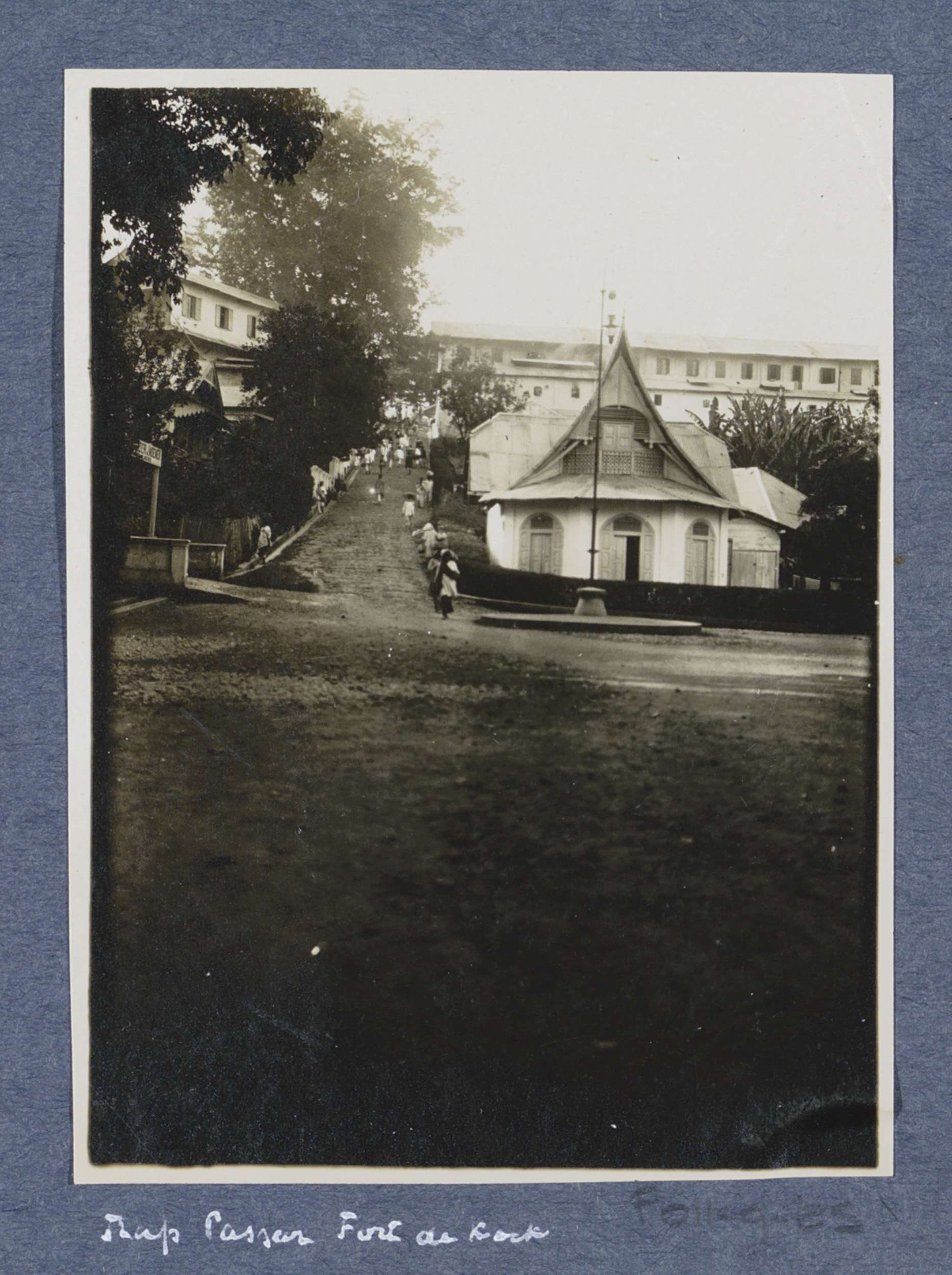 Huizen en (vermoedelijk) marktgangers bij Fort de Co...