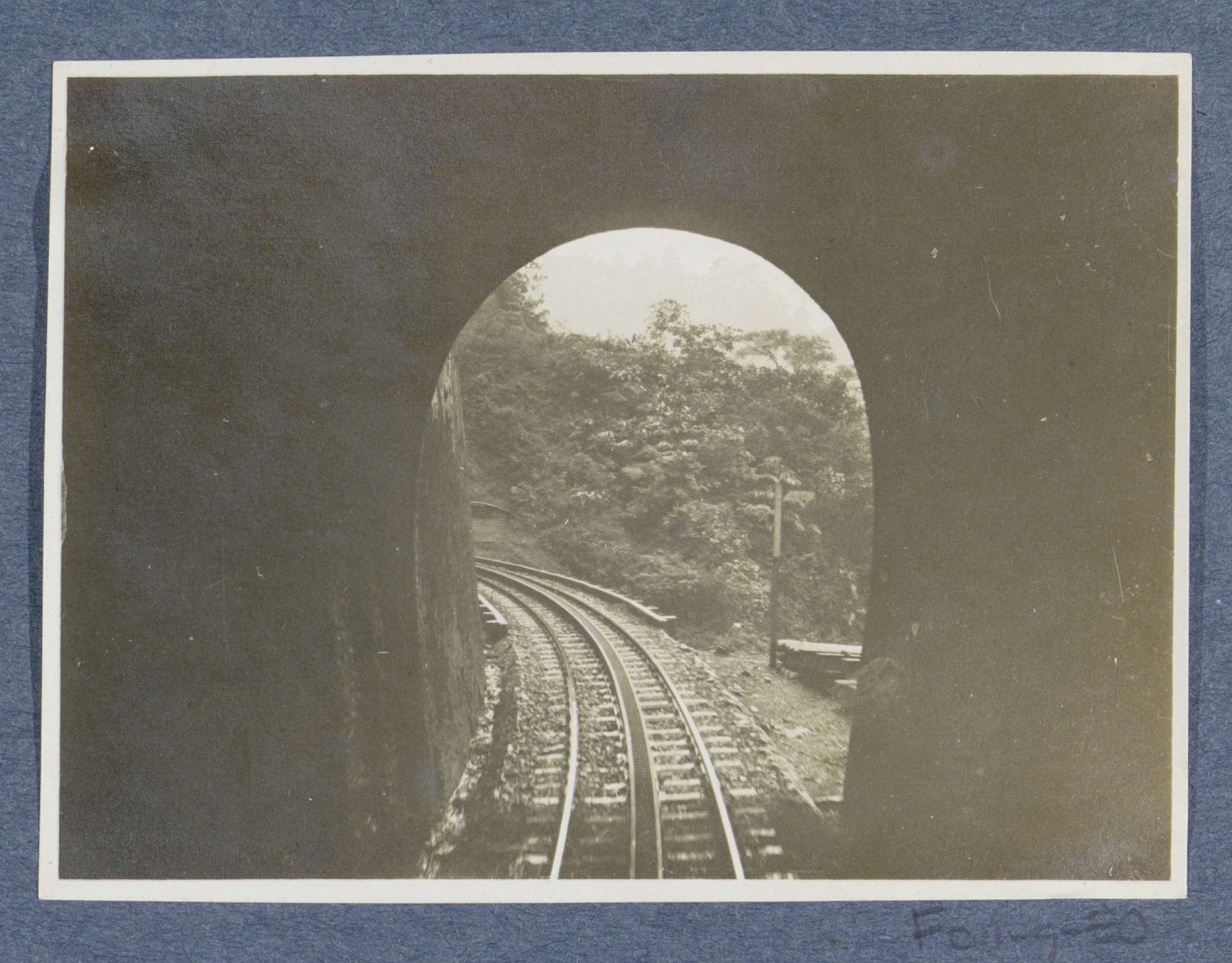 Spoorwegtunnel en rijtuig in de Anaikloof op Sumatra