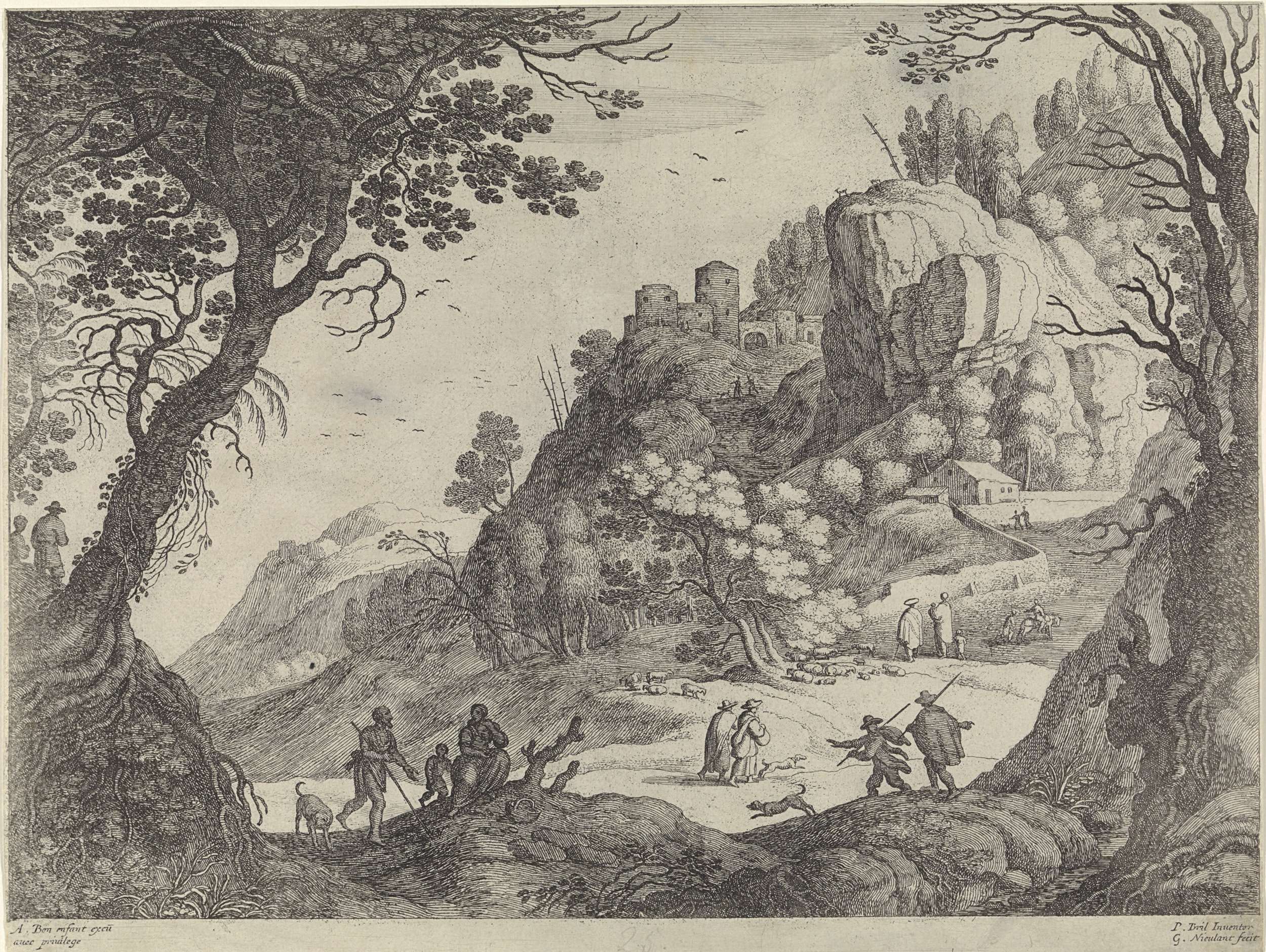 Berglandschap met figuren