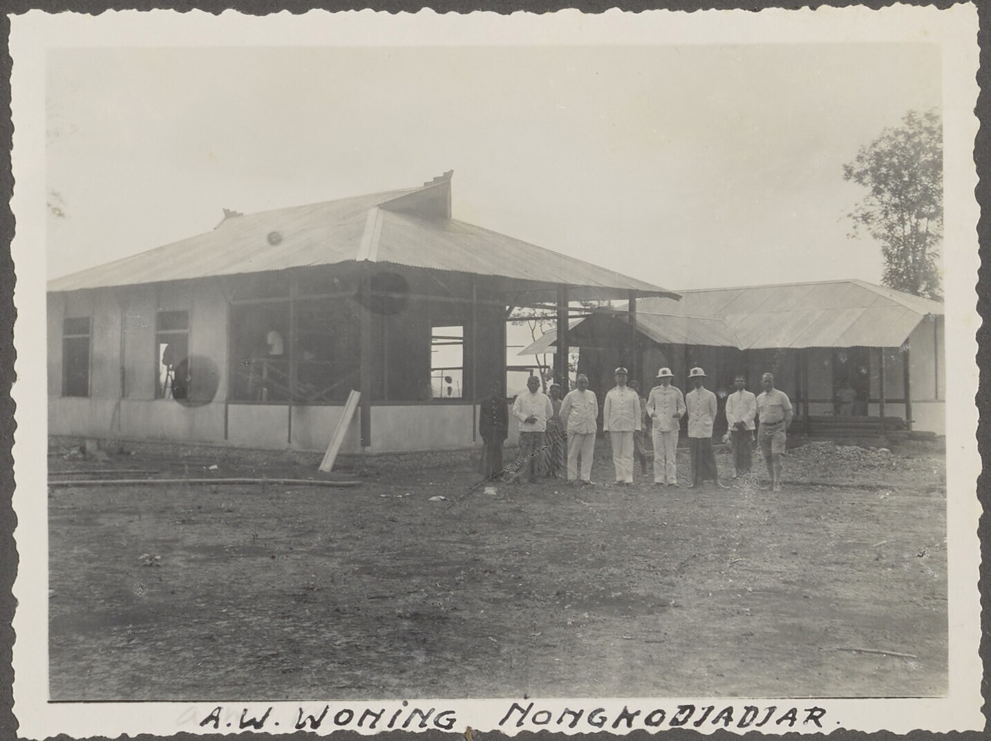 Een aantal mannen staan bij een woning in Nongkodjadjar
