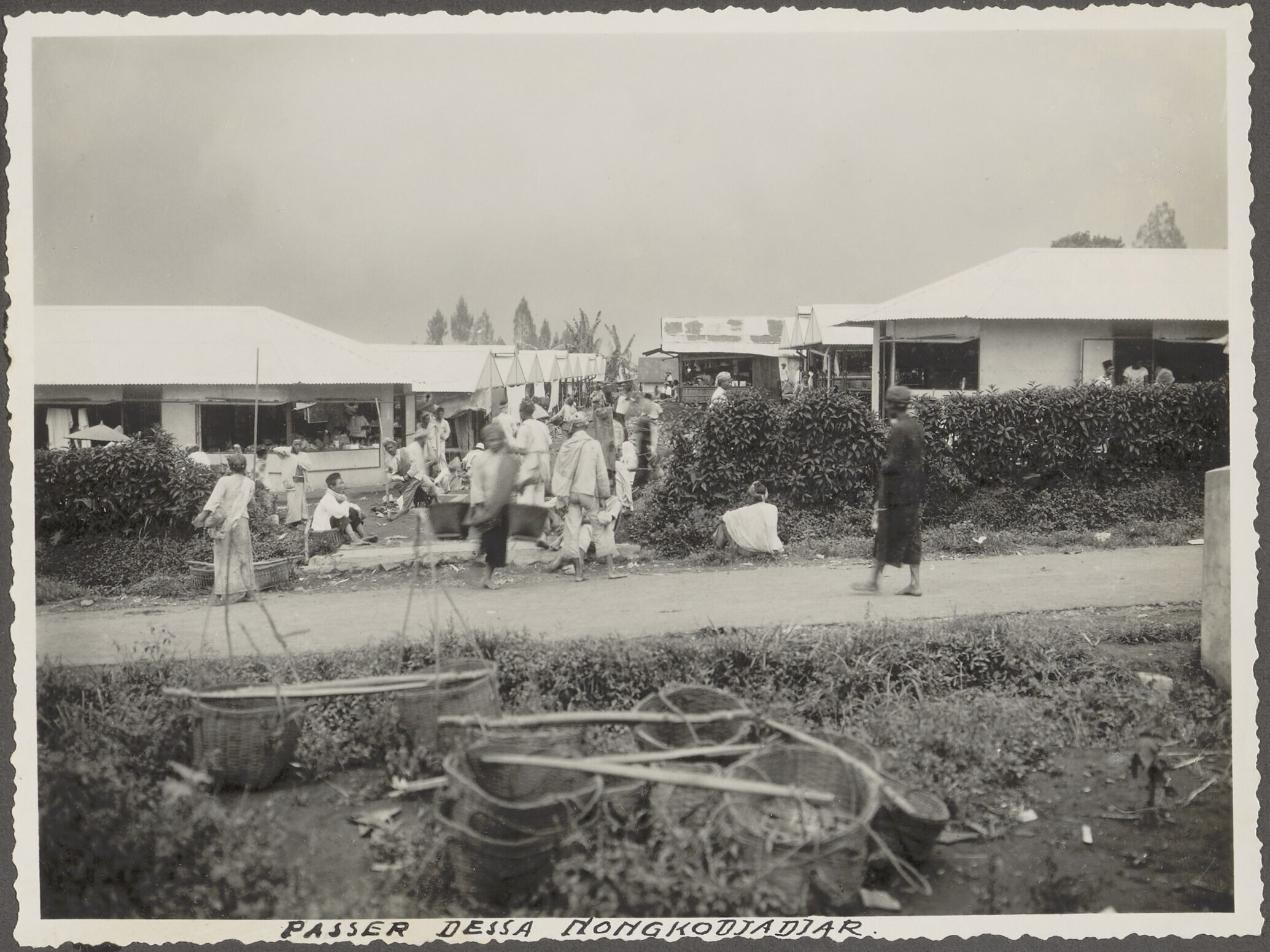 Gezicht op de marktgebouwen in de desa Nongkodjadjar