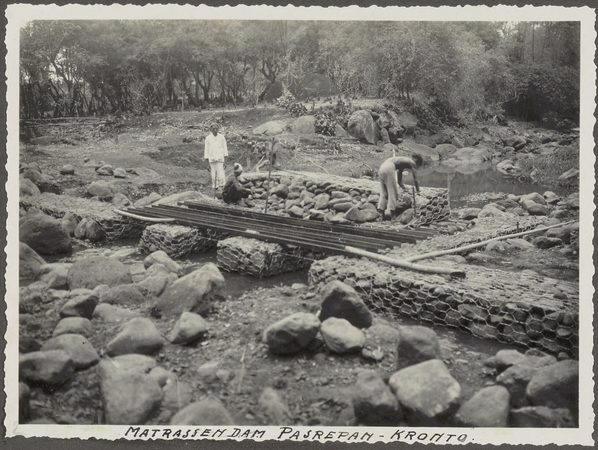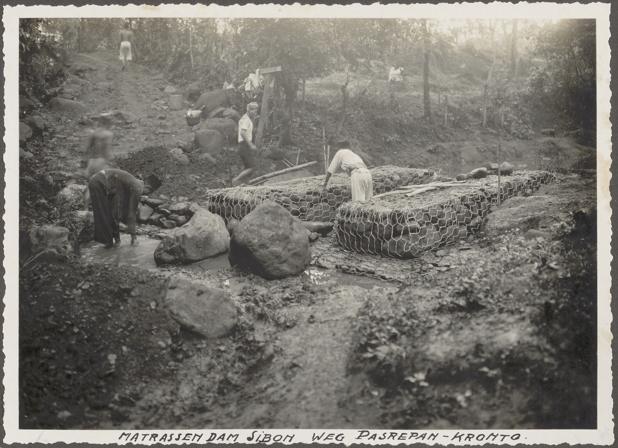 De aanleg van een matrassendam in de weg van Pasrepa...