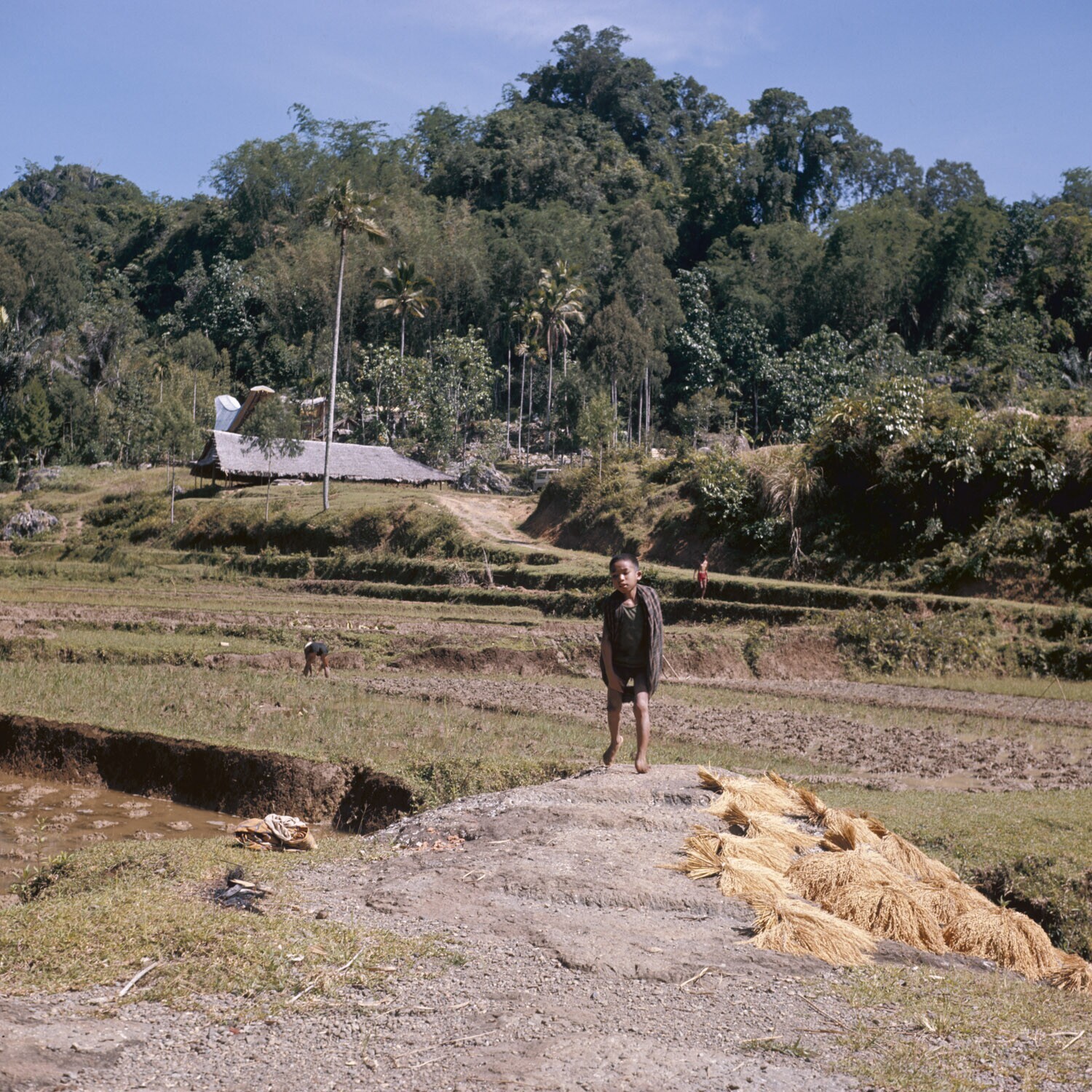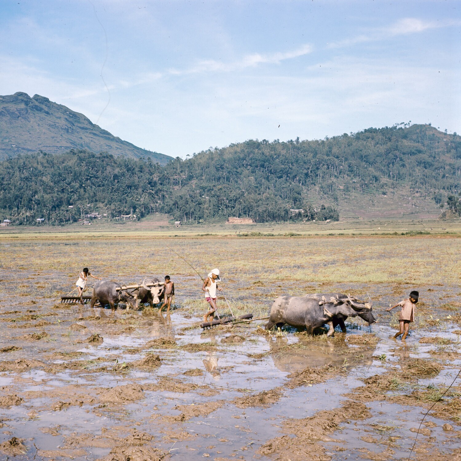 Het eggen van een sawah, Tana Toradja, Sulawesi