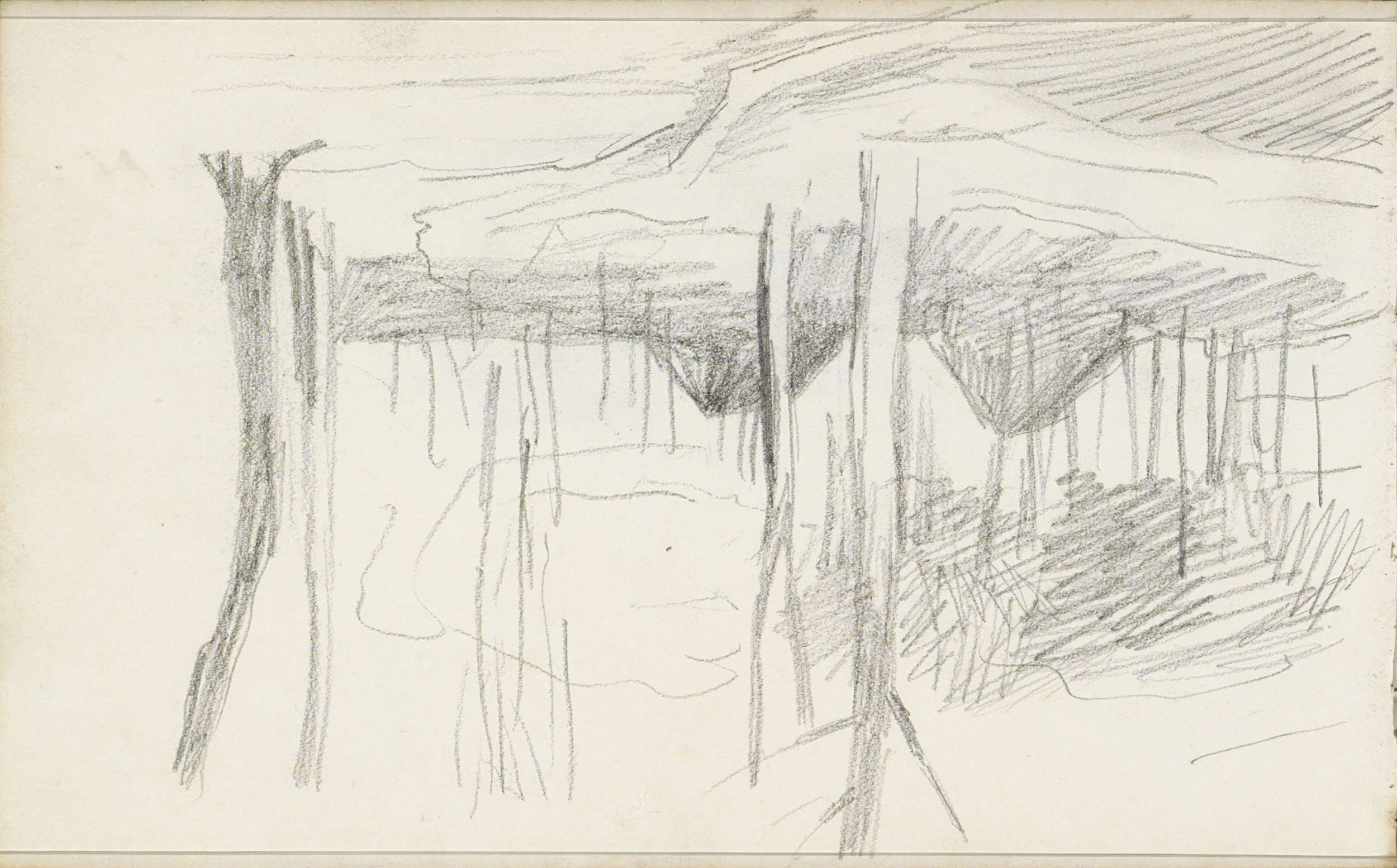 Bos met strooien hutten of hooioppers