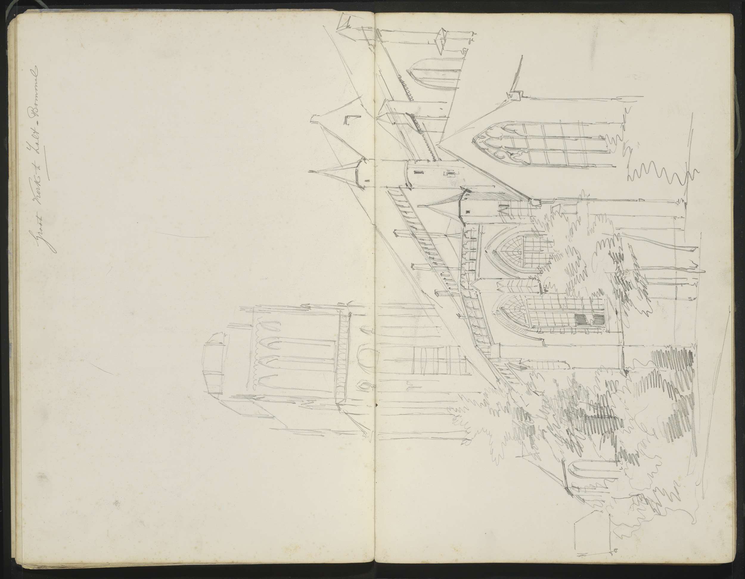 Gezicht op het koor van de Sint-Catharinakerk te Den...
