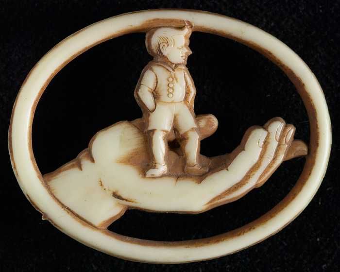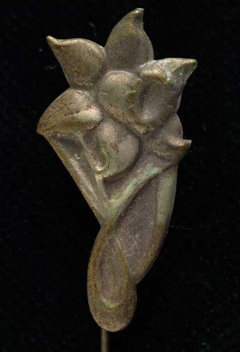 Winterhulpspeldje: ovalen metalen draagspeld met vro...