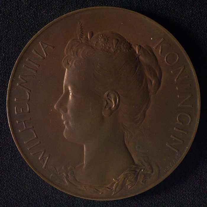 Penning bij het eerste bezoek van koningin Wilhelmin...