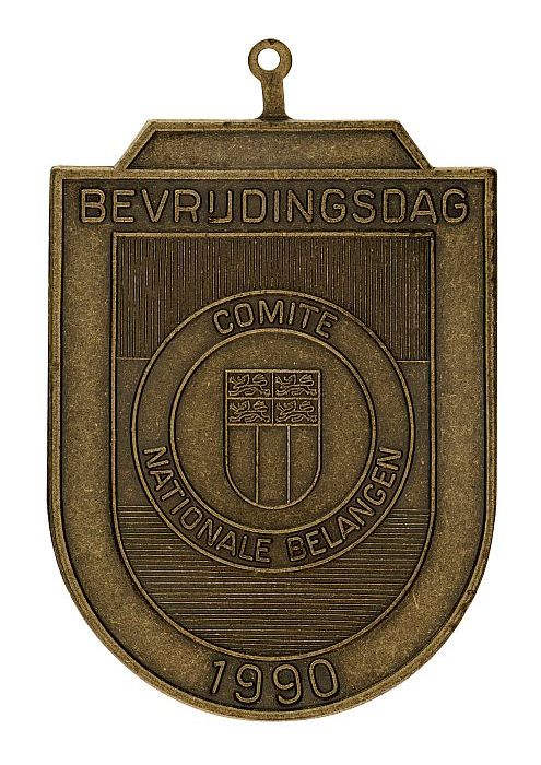 Schildvormige penning met "Bevrijdingsdag 1990 - Com...