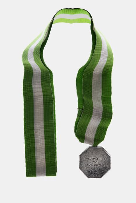 Zilveren theelepel "STERKER DOOR STRIJD / ROTTERDAM"