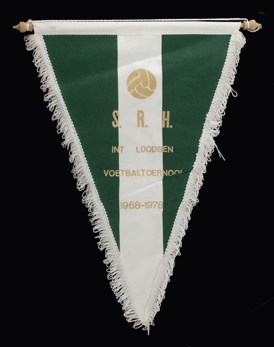 Driehoekig groen-wit-groen vaantje met "S.R.H. Int. ...
