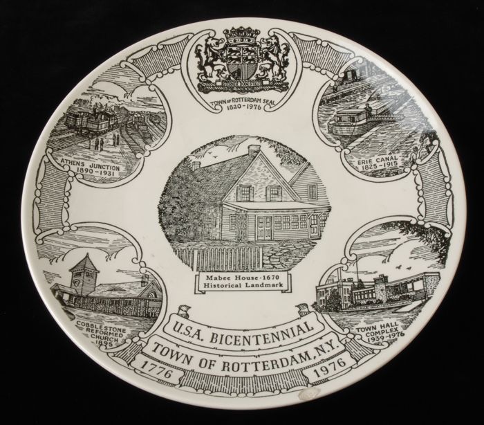Witte schotel "U.S.A. BICENTENNIAL TOWN OF ROTTERDAM...