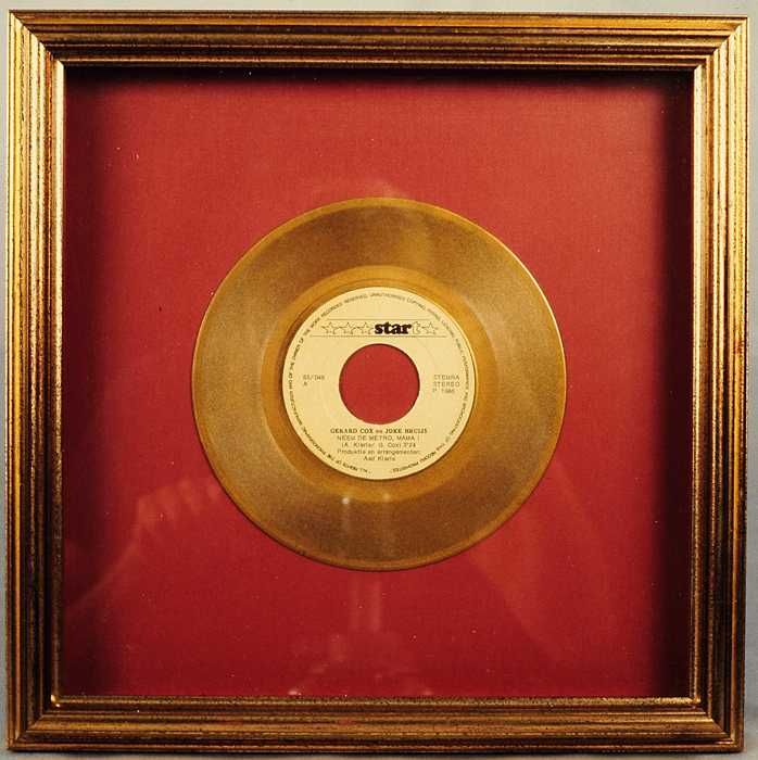 Gouden plaat met "Gerard Cox, Joke Bruys 'Neem de Me...