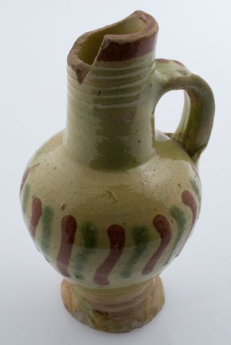 Geel geglazuurde aardewerk kandelaar, met handvat en...