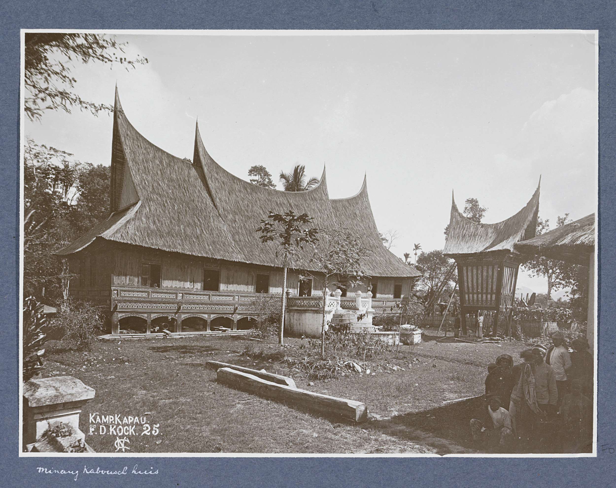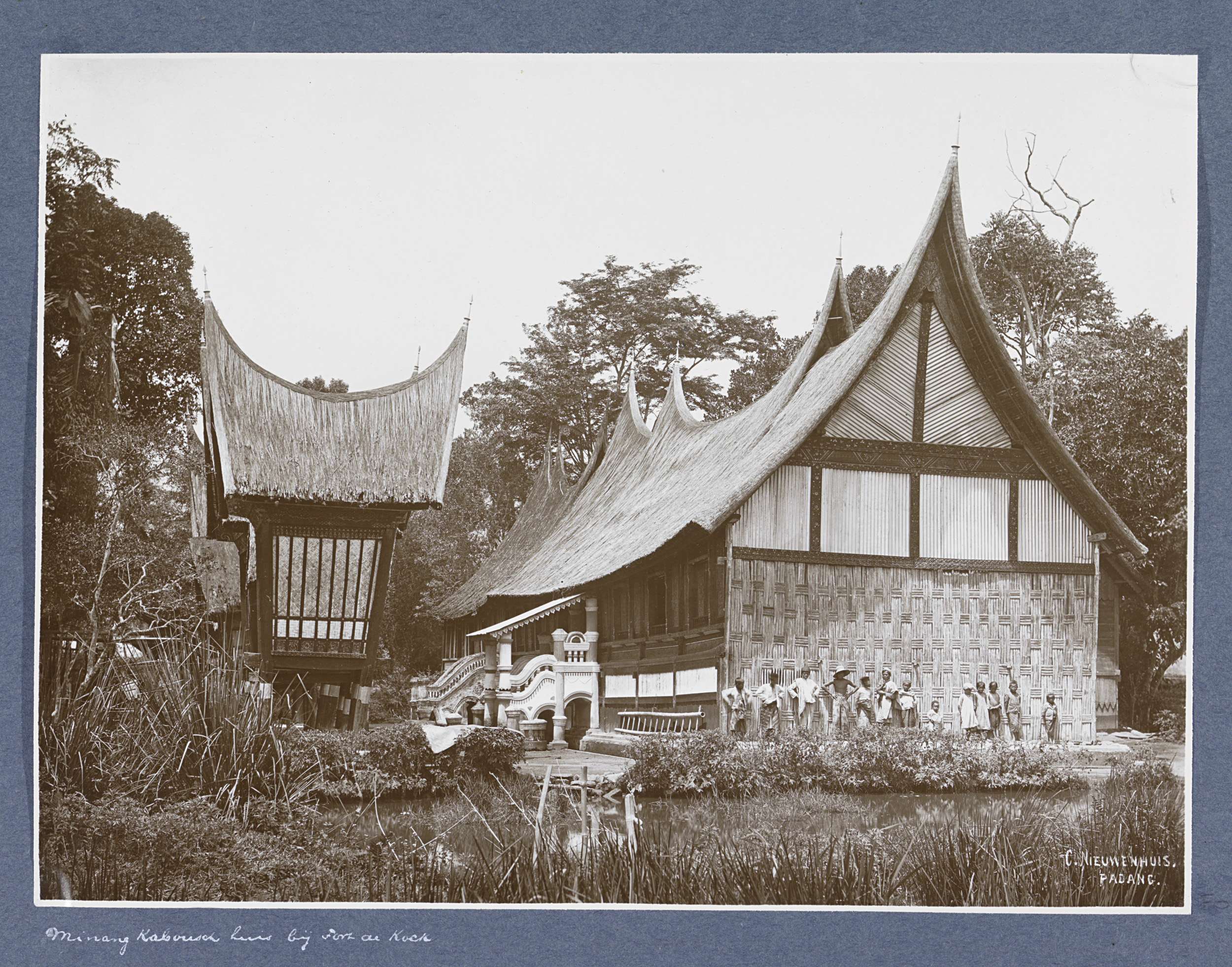 Exterieur van een Minangkabouhuis in Padang Pandjang...
