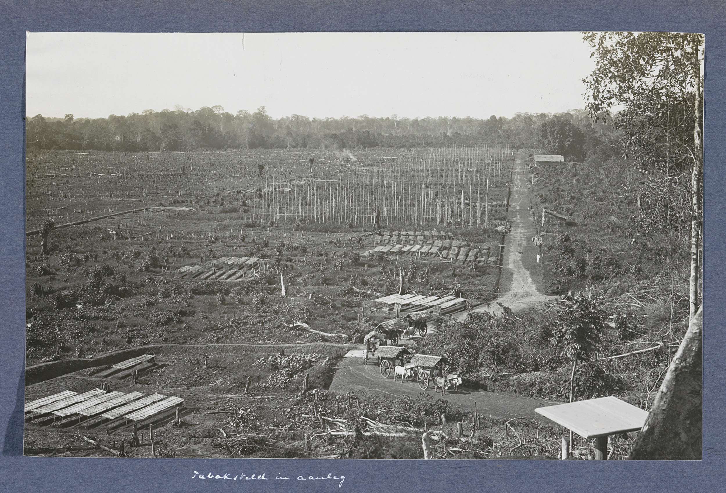 Mannen poserend voor padischuren in Batipoeh op Suma...
