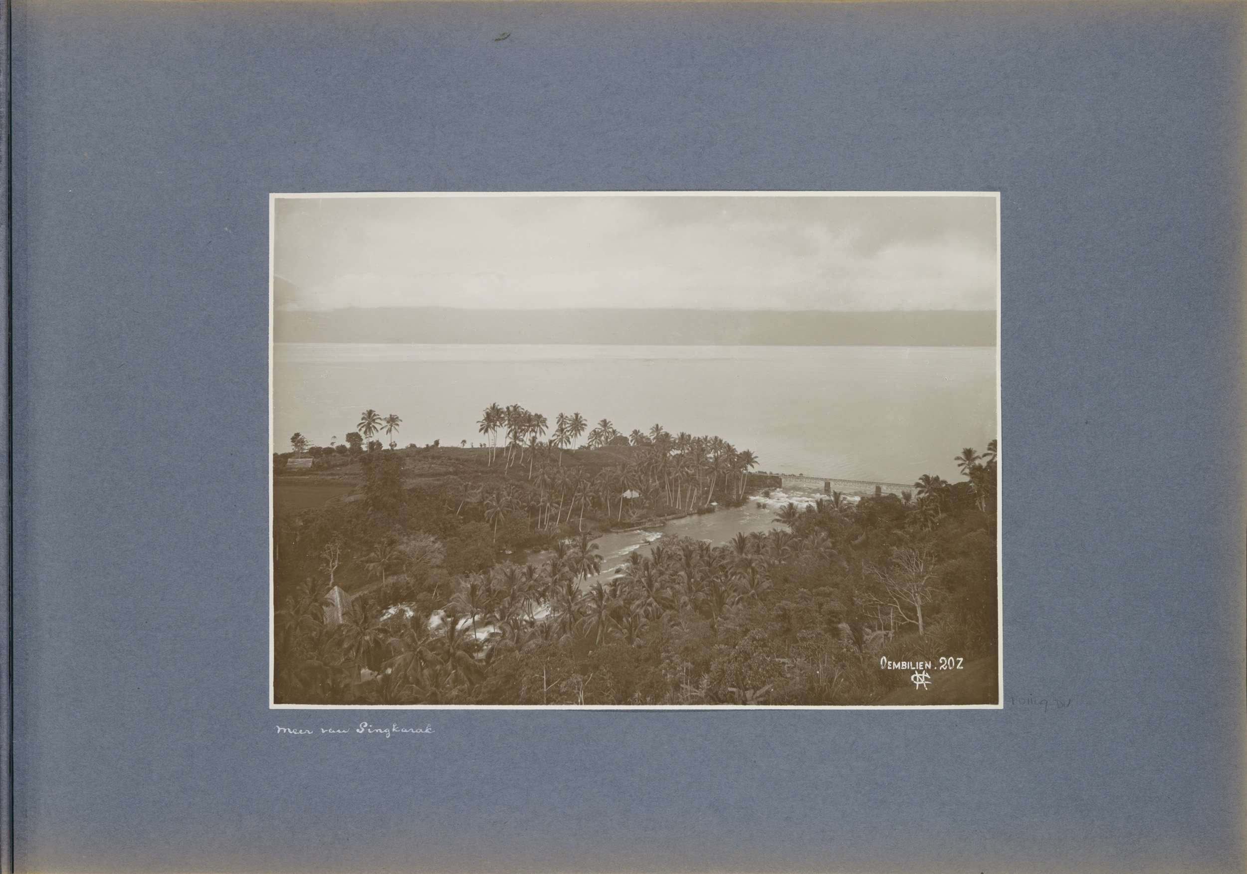 Gezicht op het Meer van Manindjau op Sumatra met op ...