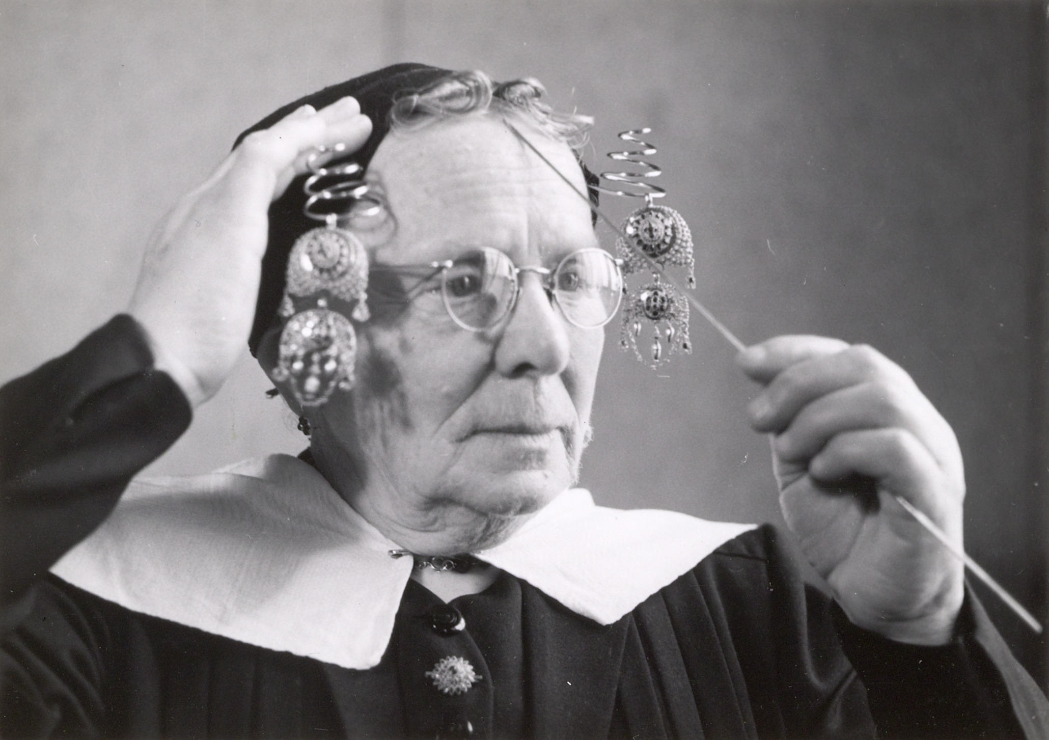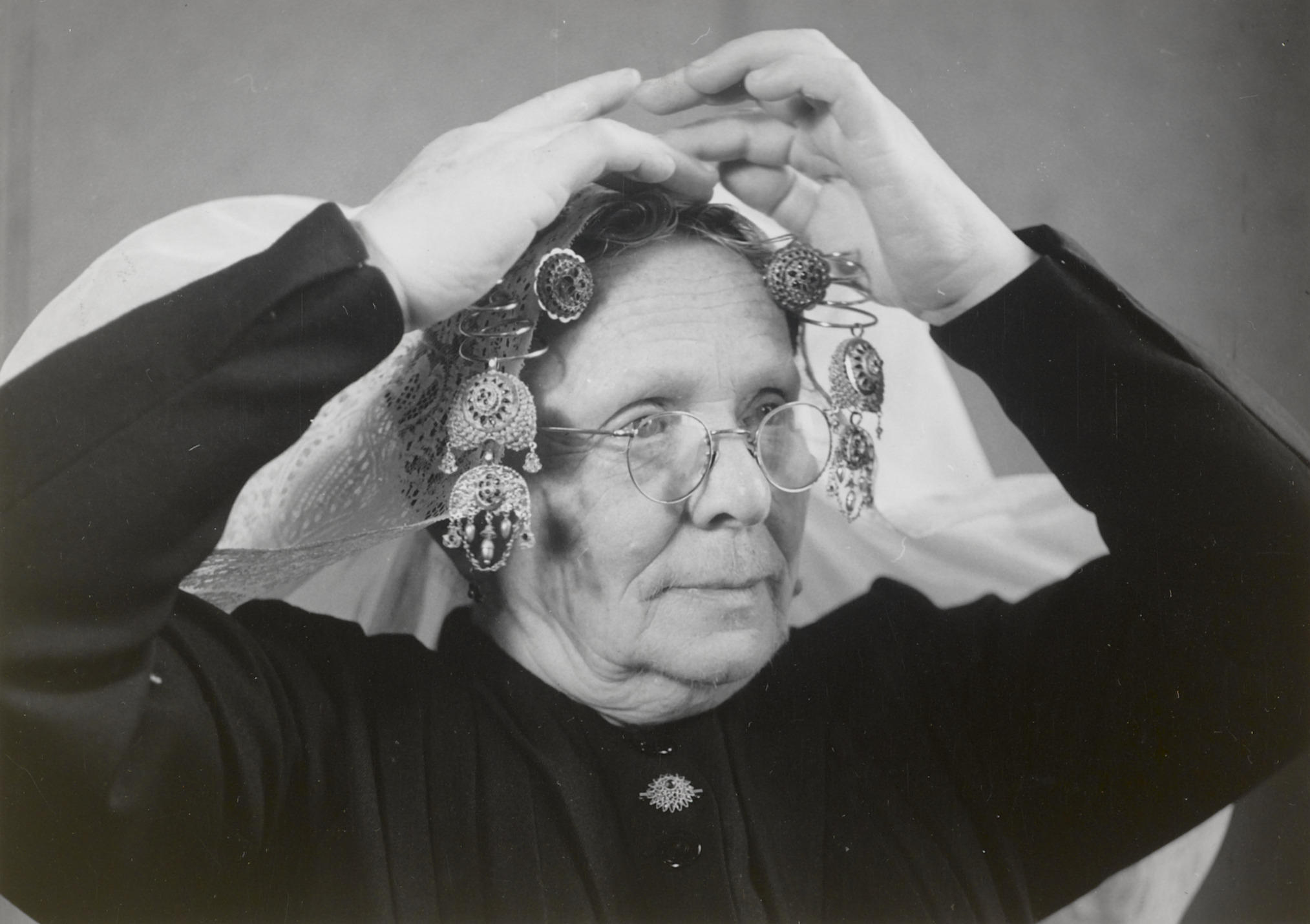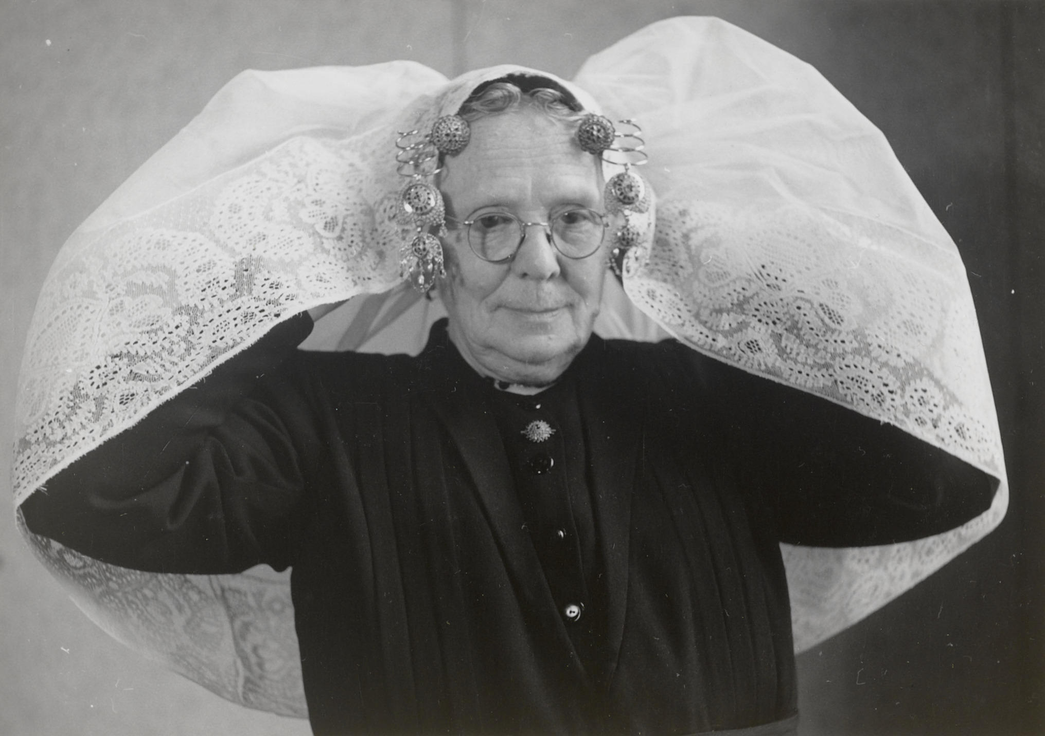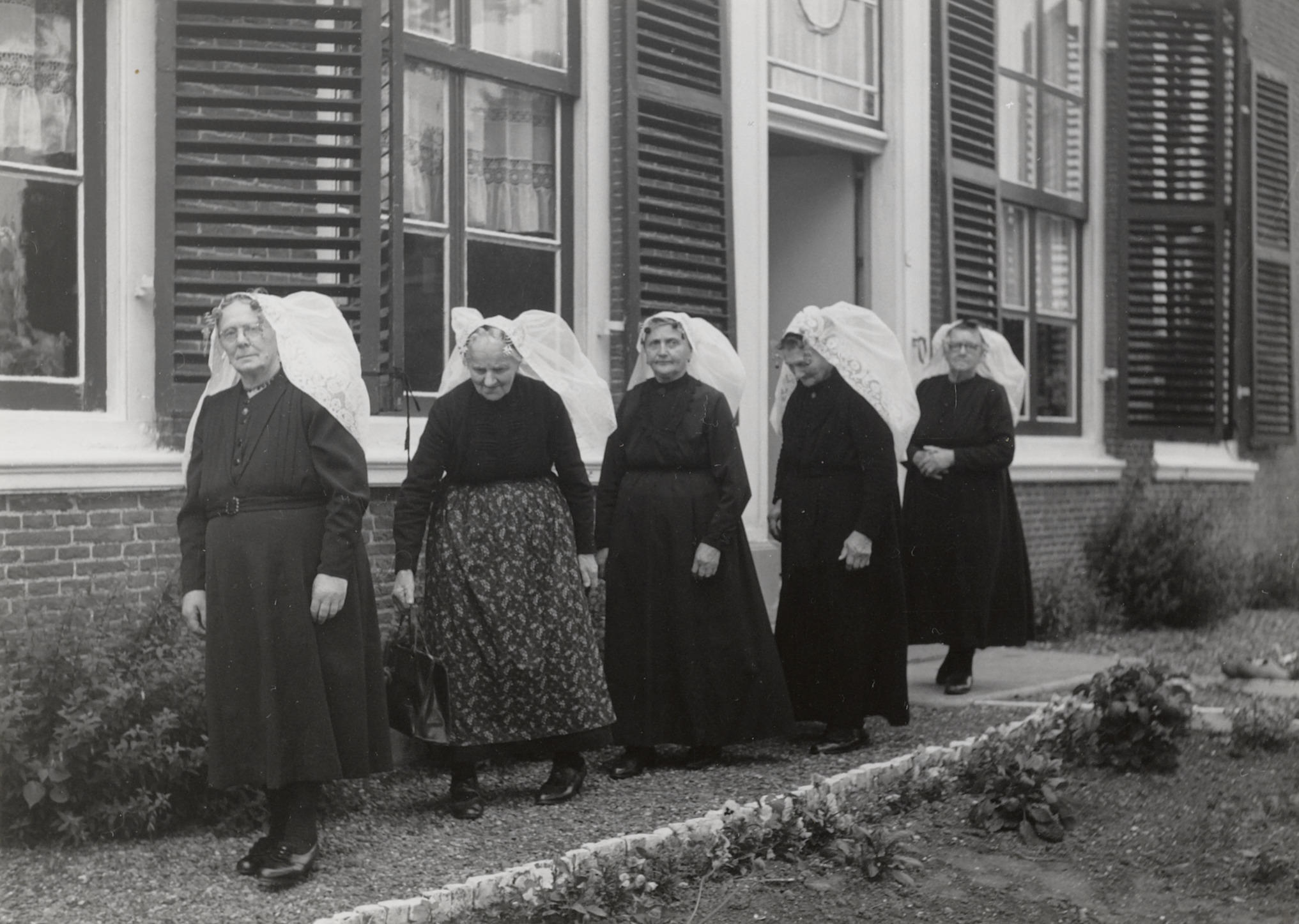 Vrouwen in Noord-Bevelandse dracht, 1956 (zwart-wit ...