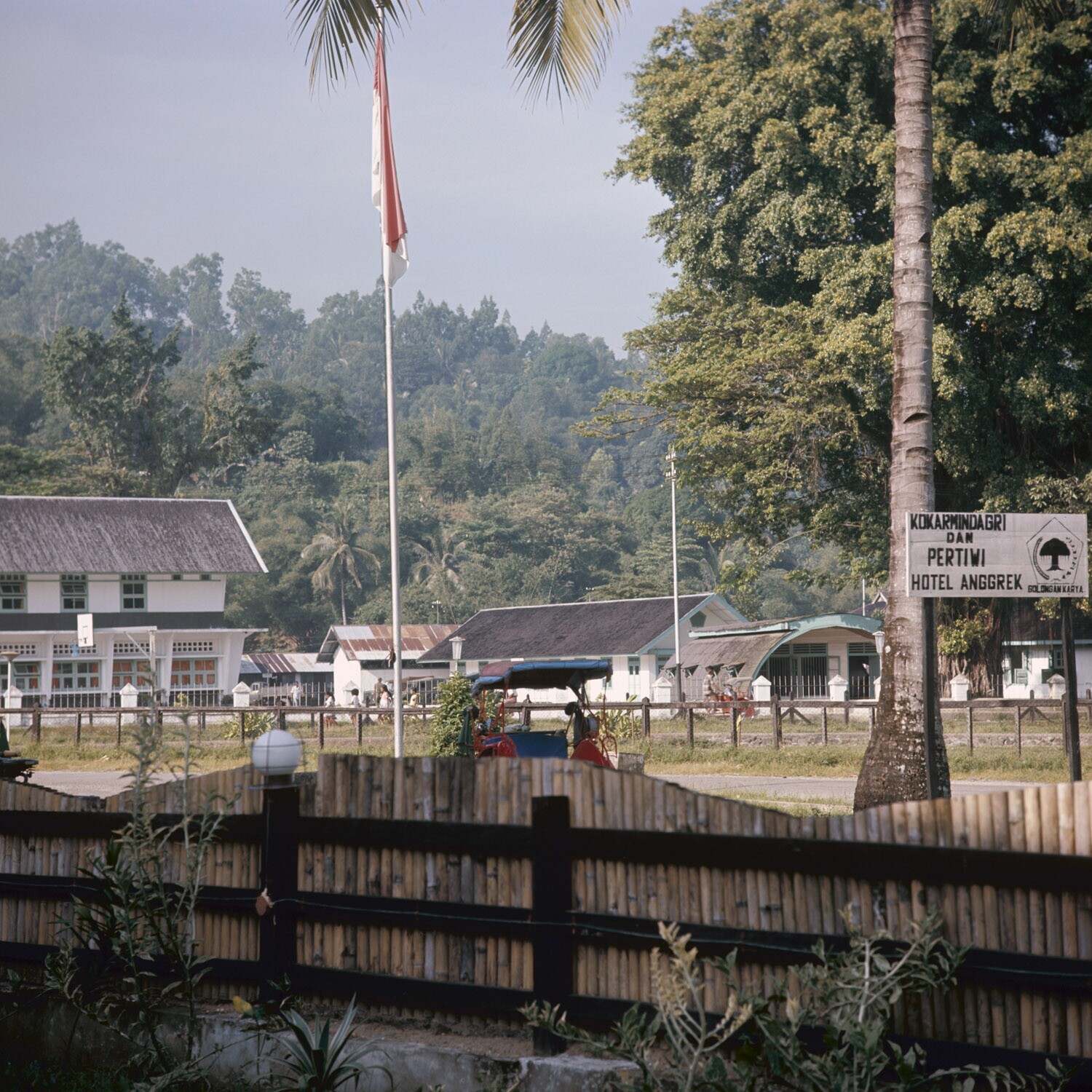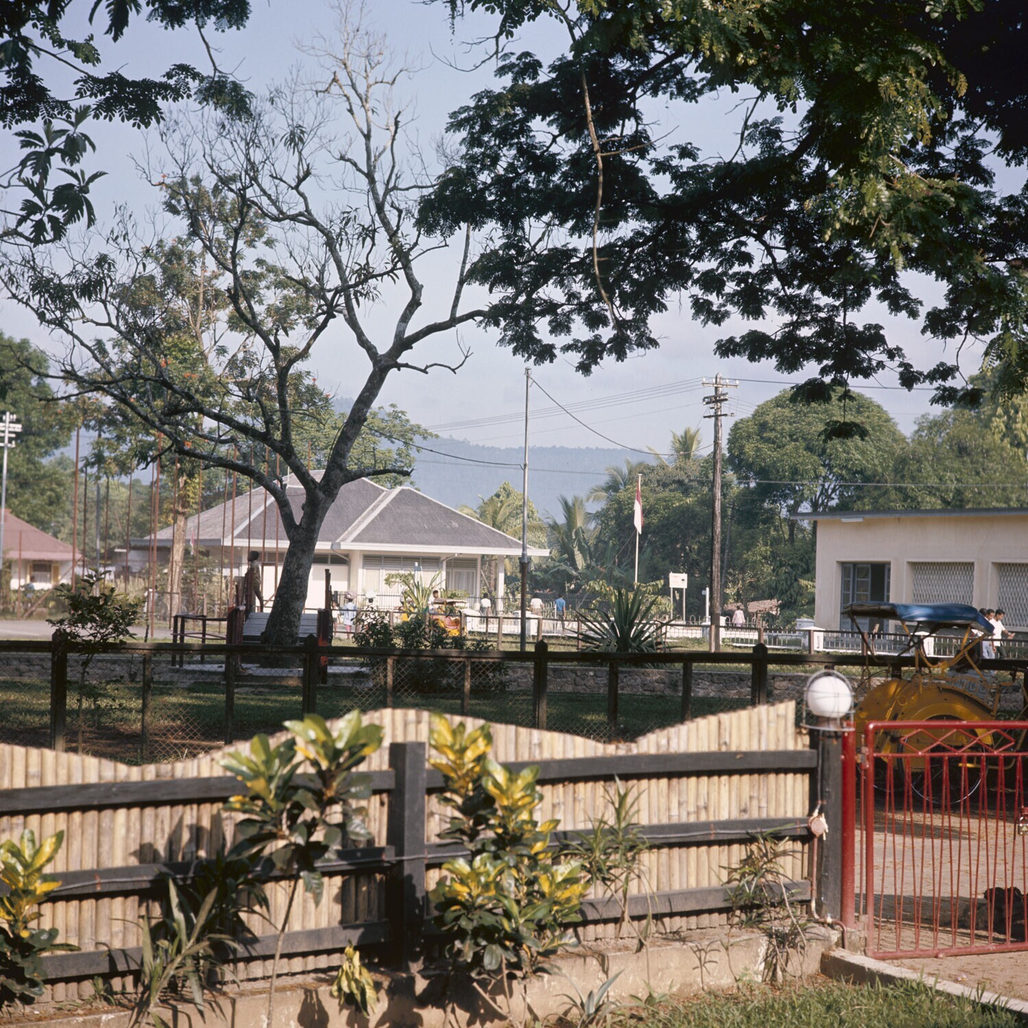 Plein met waringinboom voor hotel Angkrek, Ambon