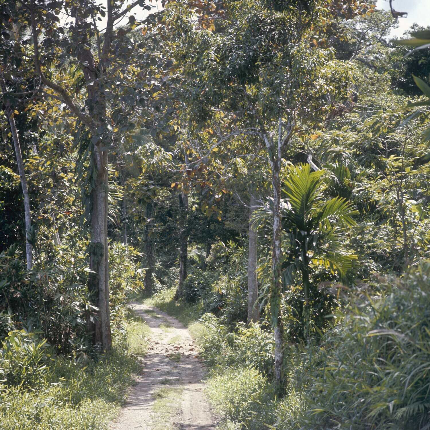 Weg door een oude nootmuskaattuin, tussen Hitu en Hi...