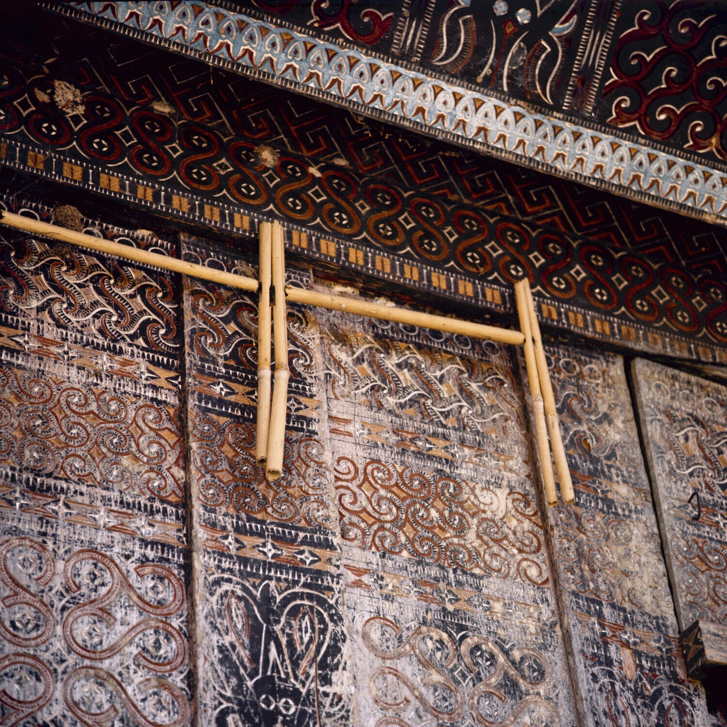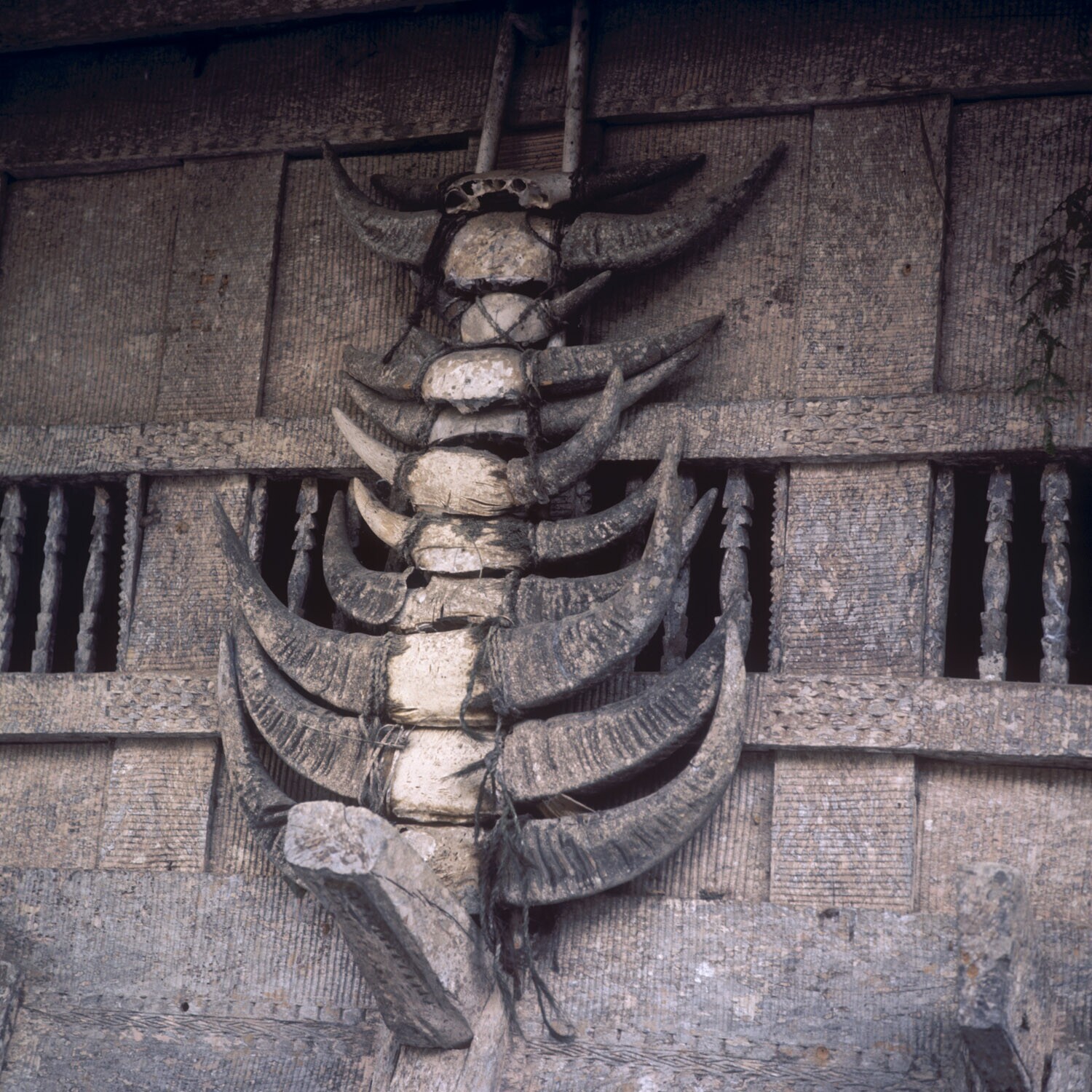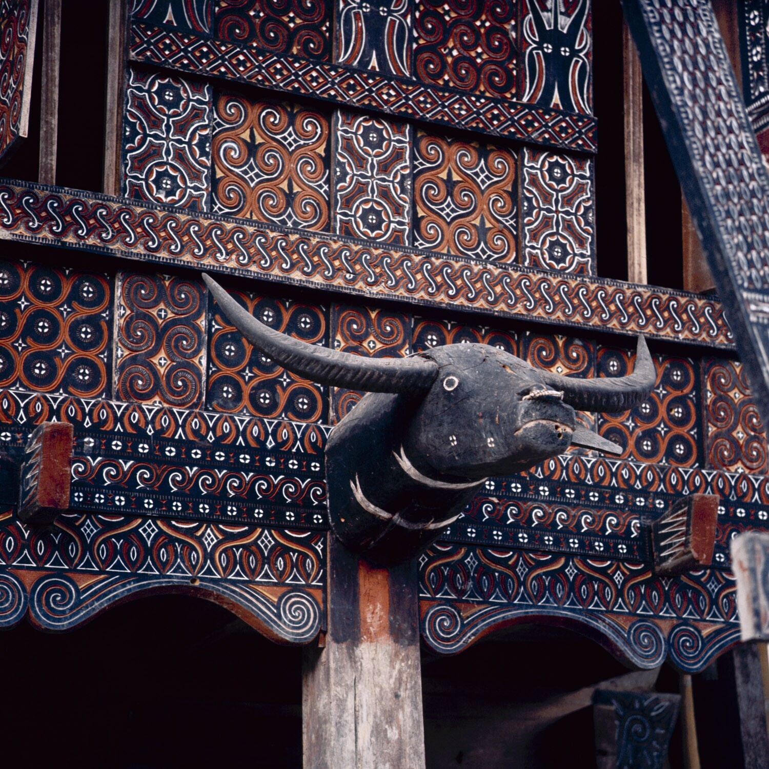 Gevelversieringen van Toradjahuisen in het dorp Mara...