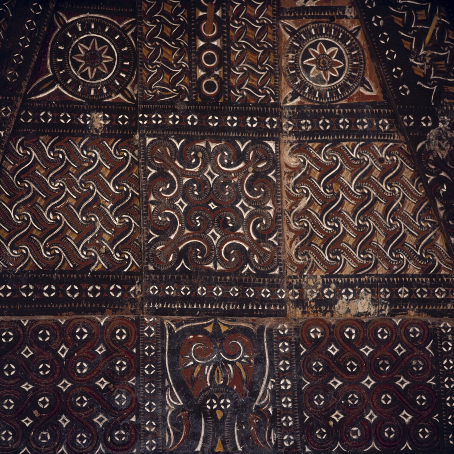 Houtsnijwerk in de wandpanelen van een huis, dorp Ma...
