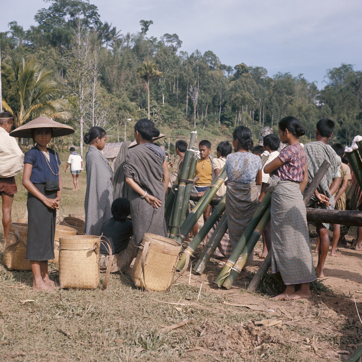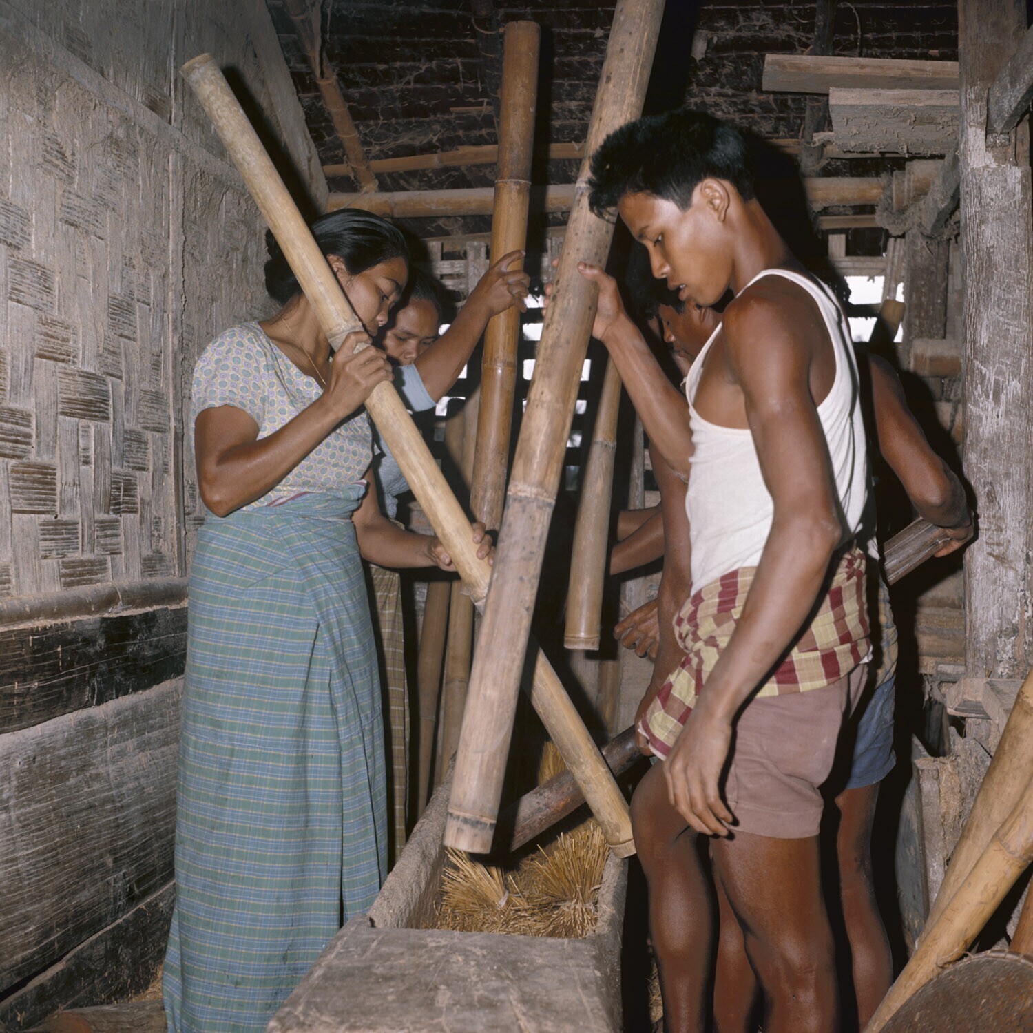 Het stampen van rijst, Tana Toradja, Sulawesi
