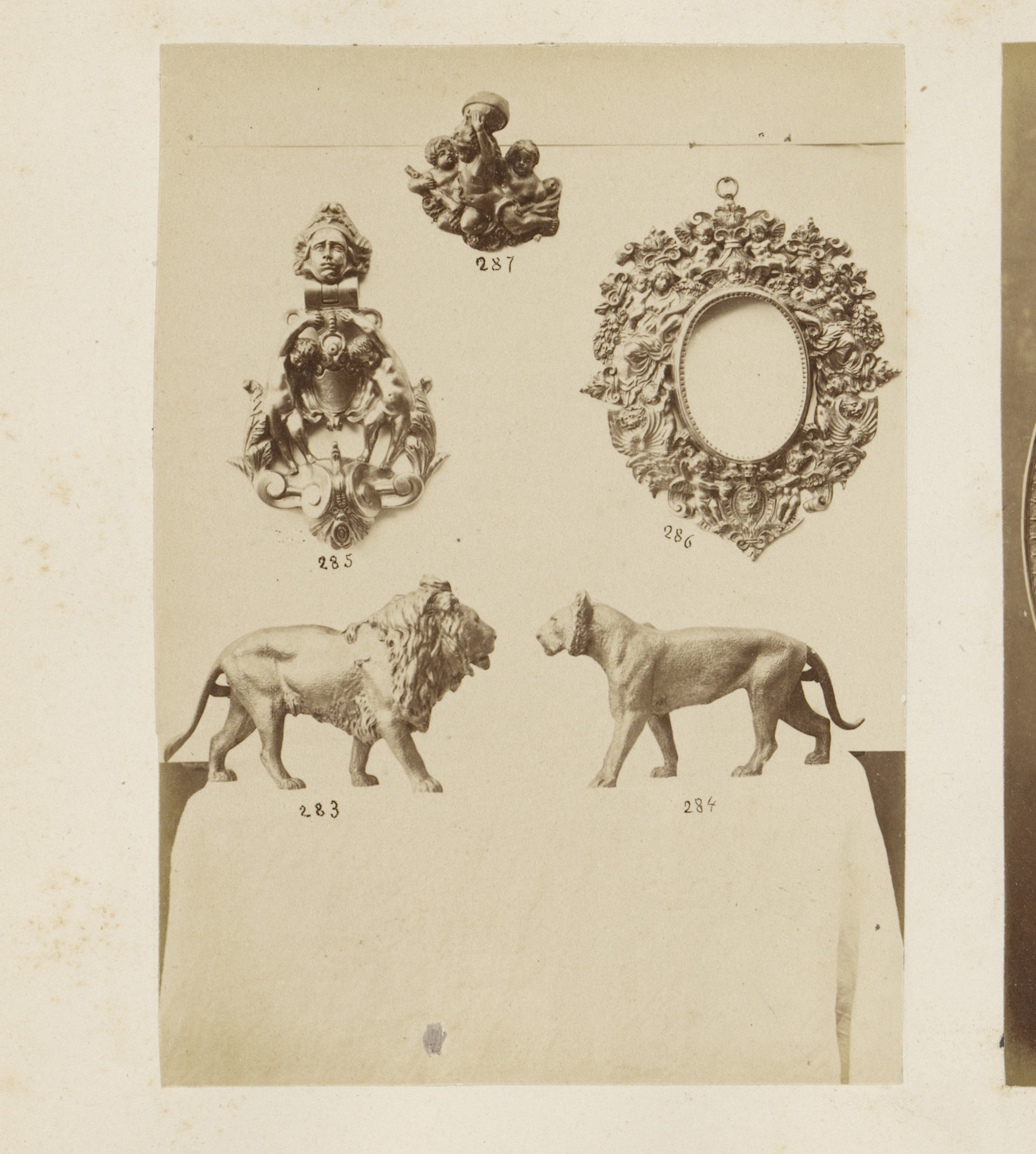 Metalen lijst en sculpturen van beesten en groepen p...