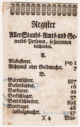 Tekstpagina met register uit "Etwas fur alle"