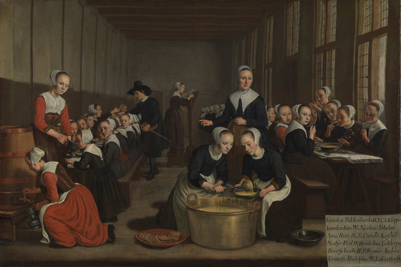 Maaltijd van weesmeisjes uit het Diaconieweeshuis