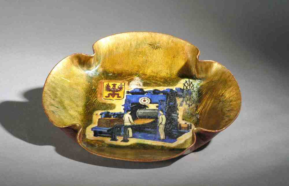 Asbak van koper met opschrift: N.V. Koperpletterij e...