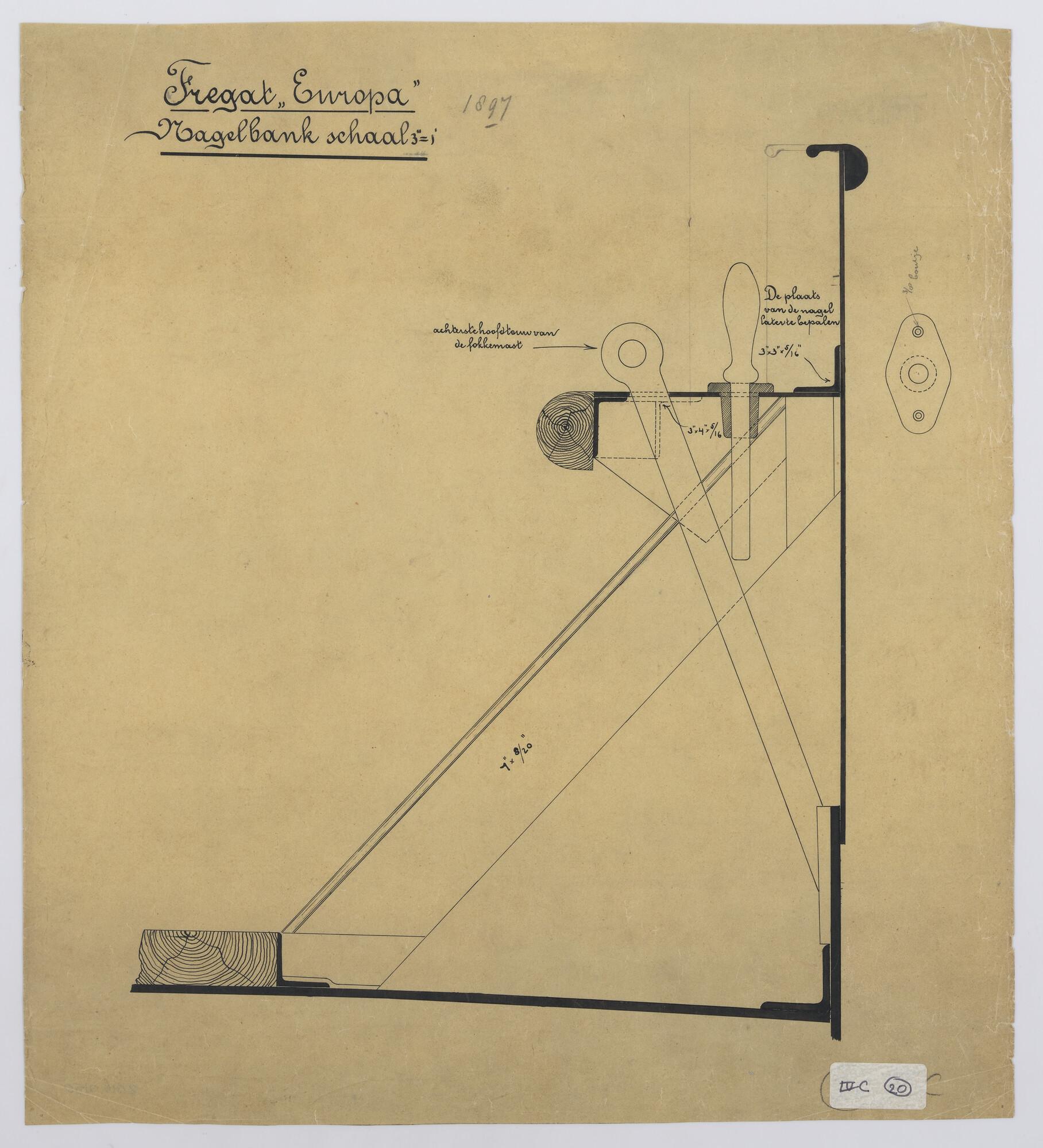Nagelbank van het stalen fregatschip Europa