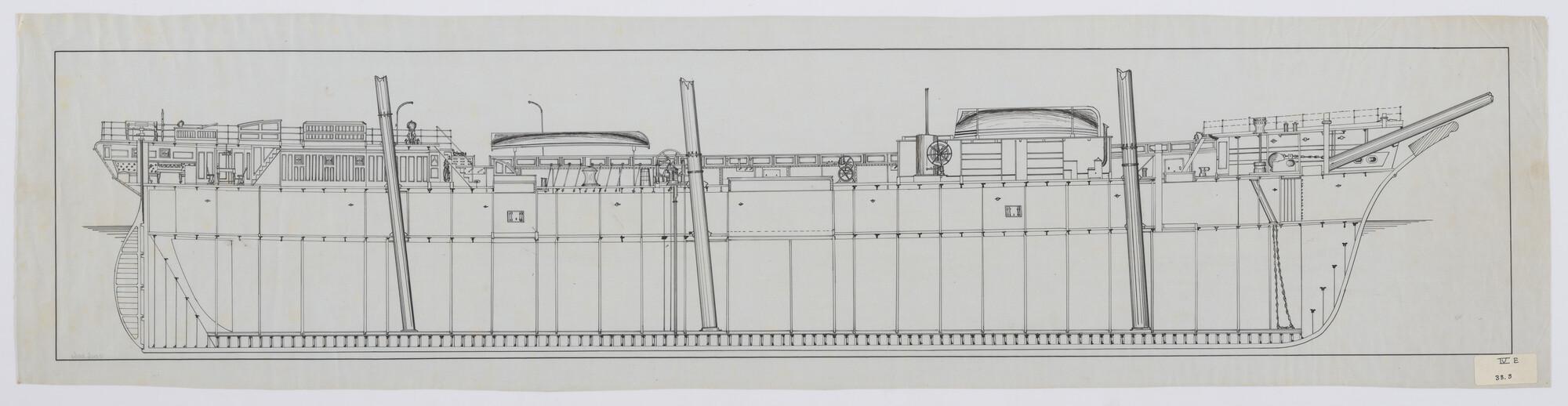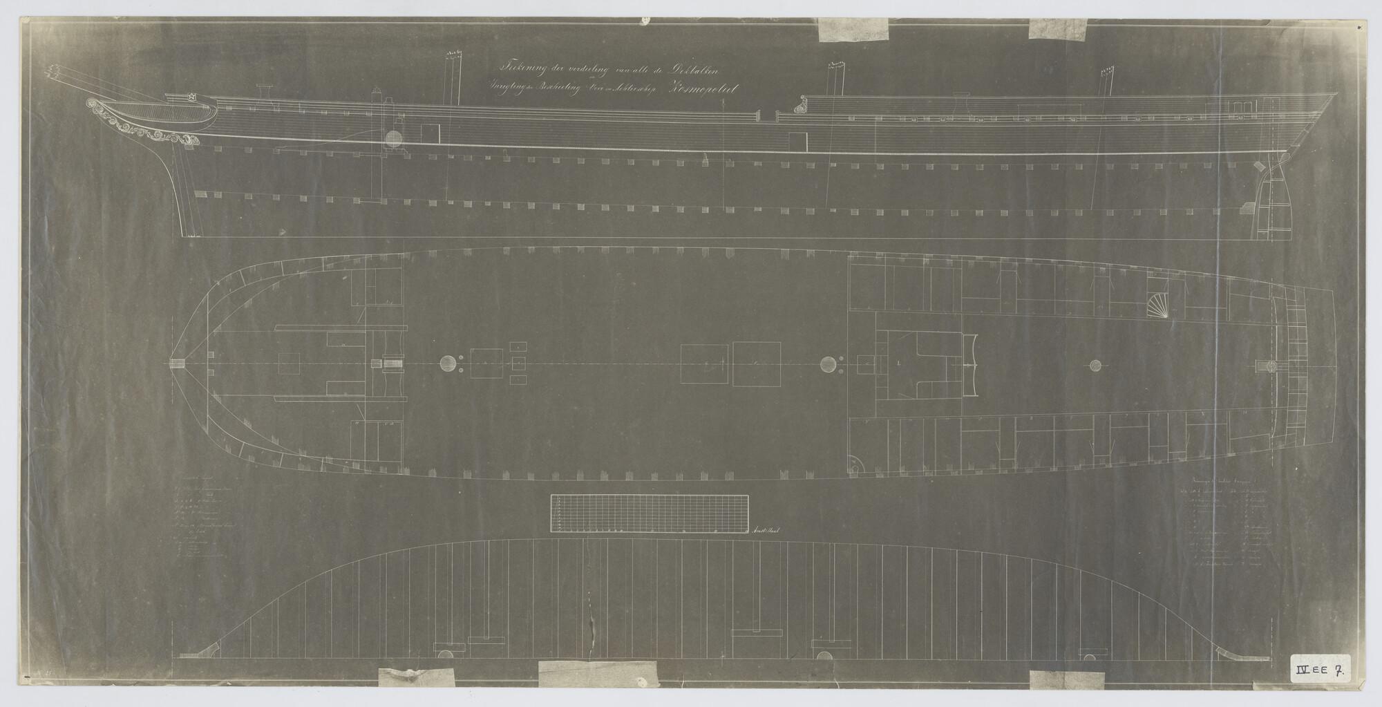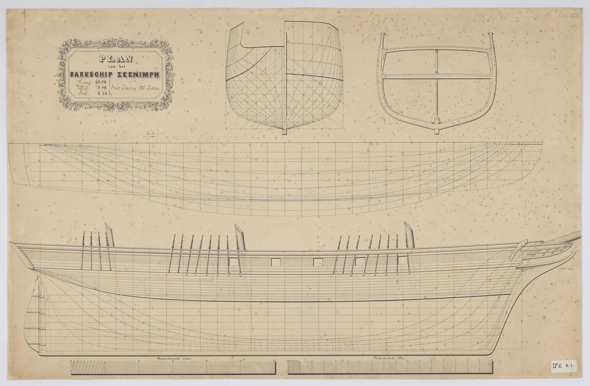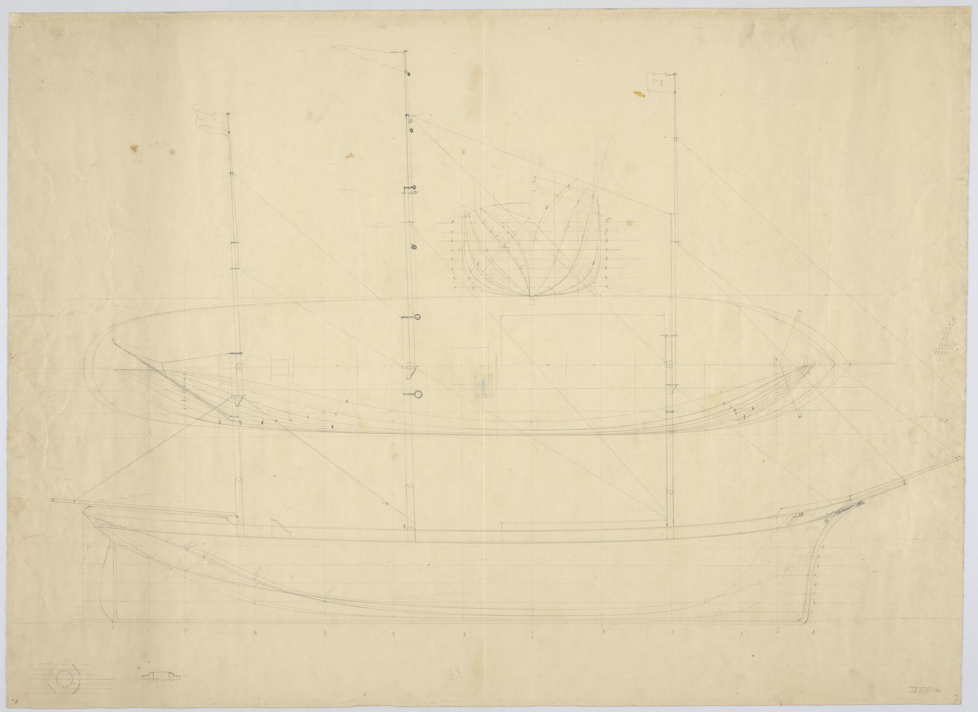 Zijaanzicht, spantenraam, waterlijnen, verticalen en...