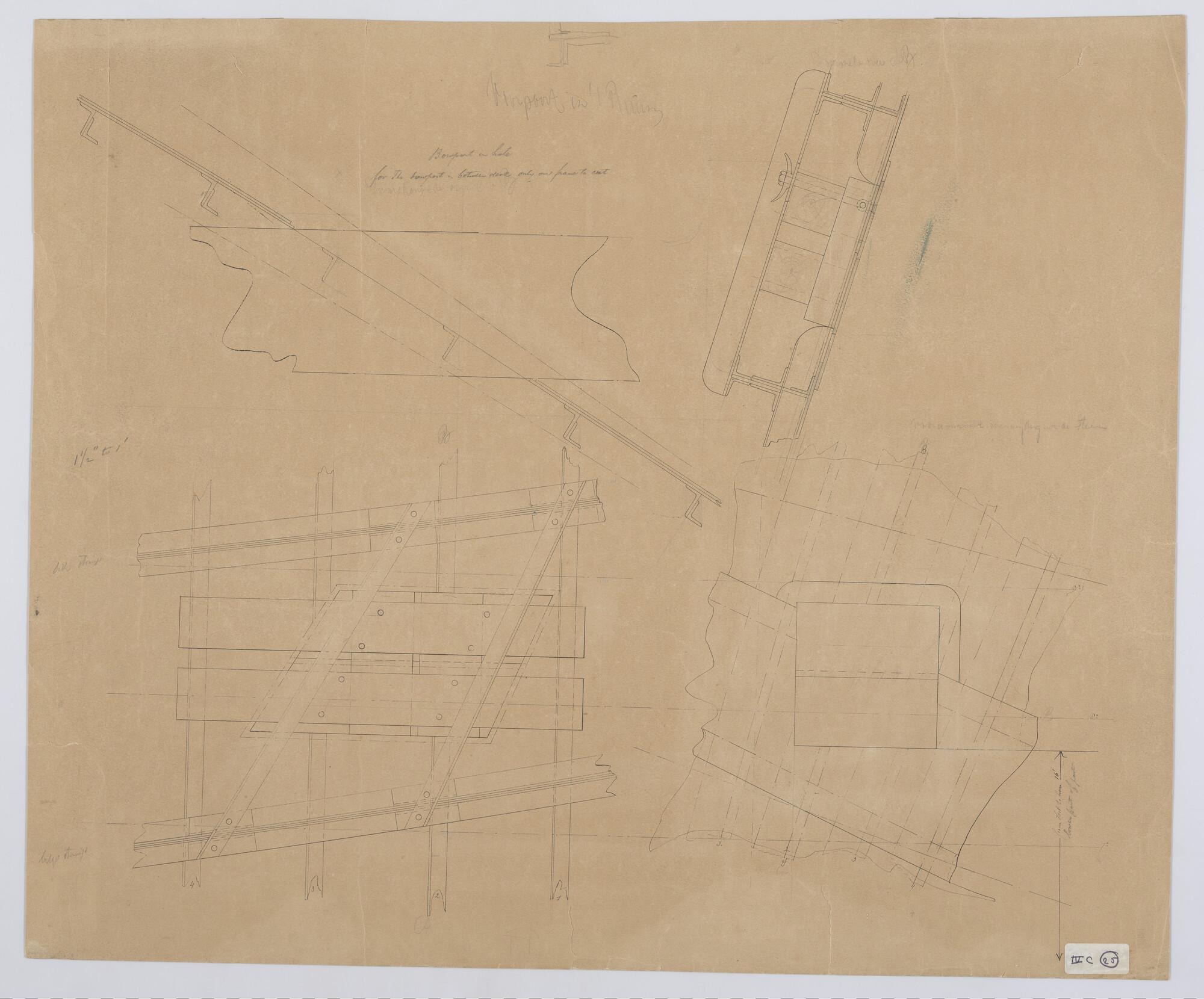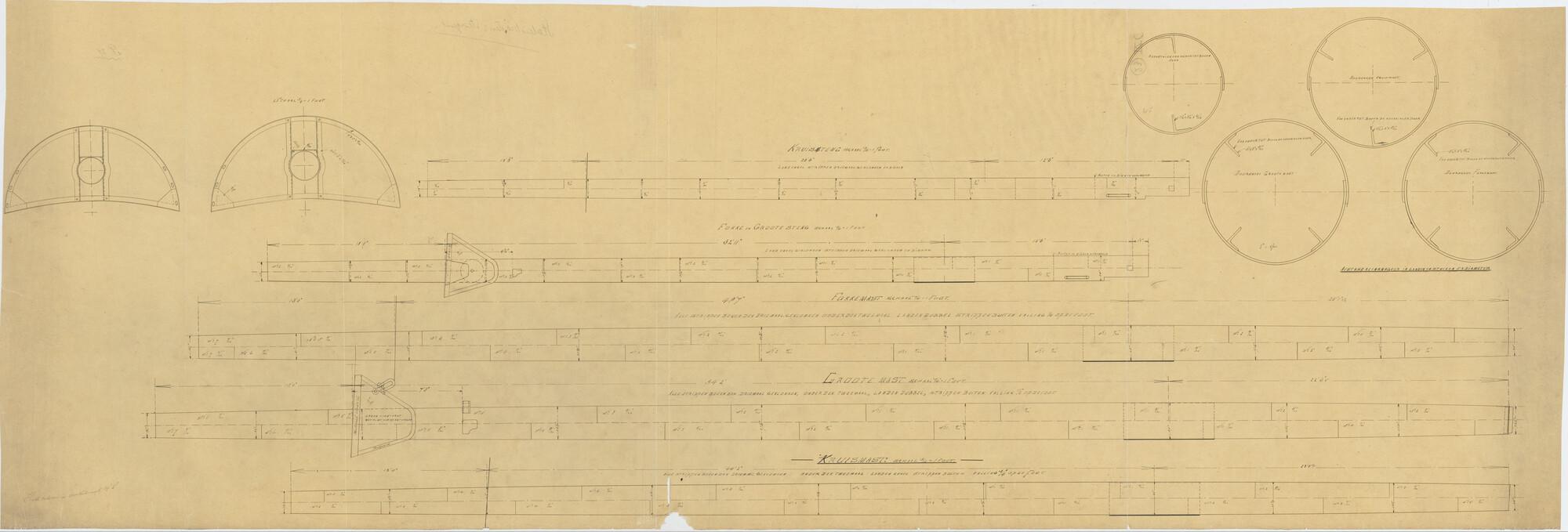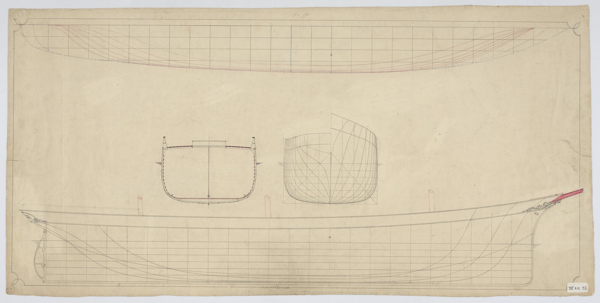 Verticale langsdoorsnede, dwarsdoorsnede, spantenraa...