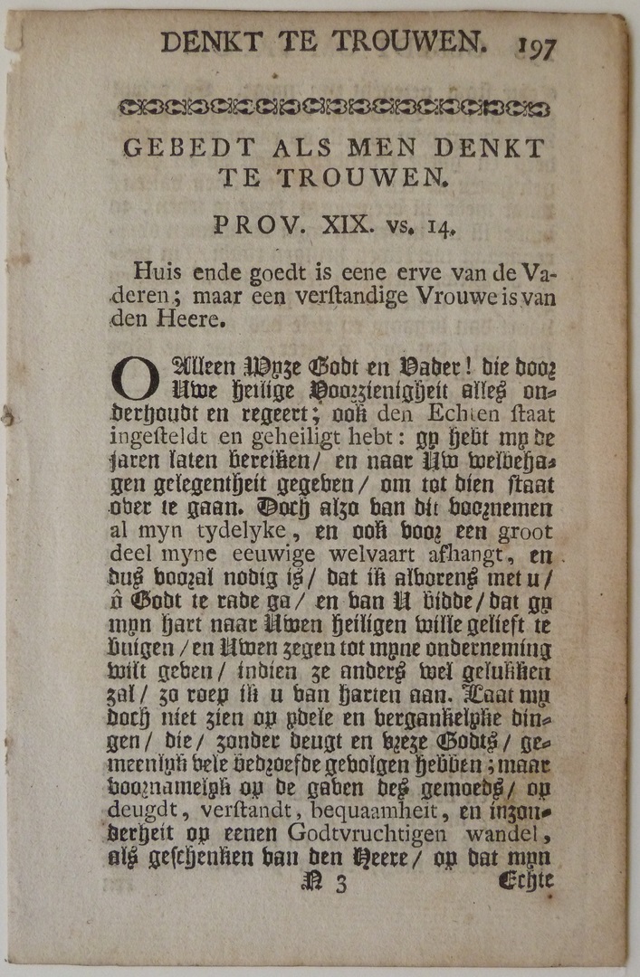 Vier bladzijden uit een boek met "... gebedt als men...