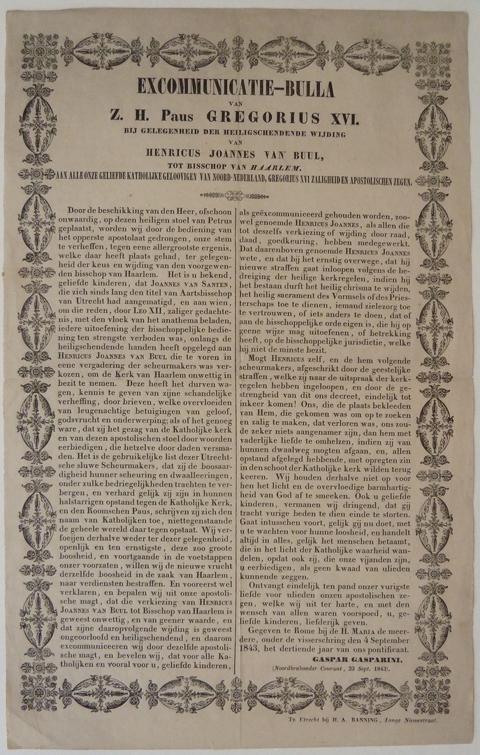 Excommunicatie-bulla van Z.H. paus Gregorius XVI ......