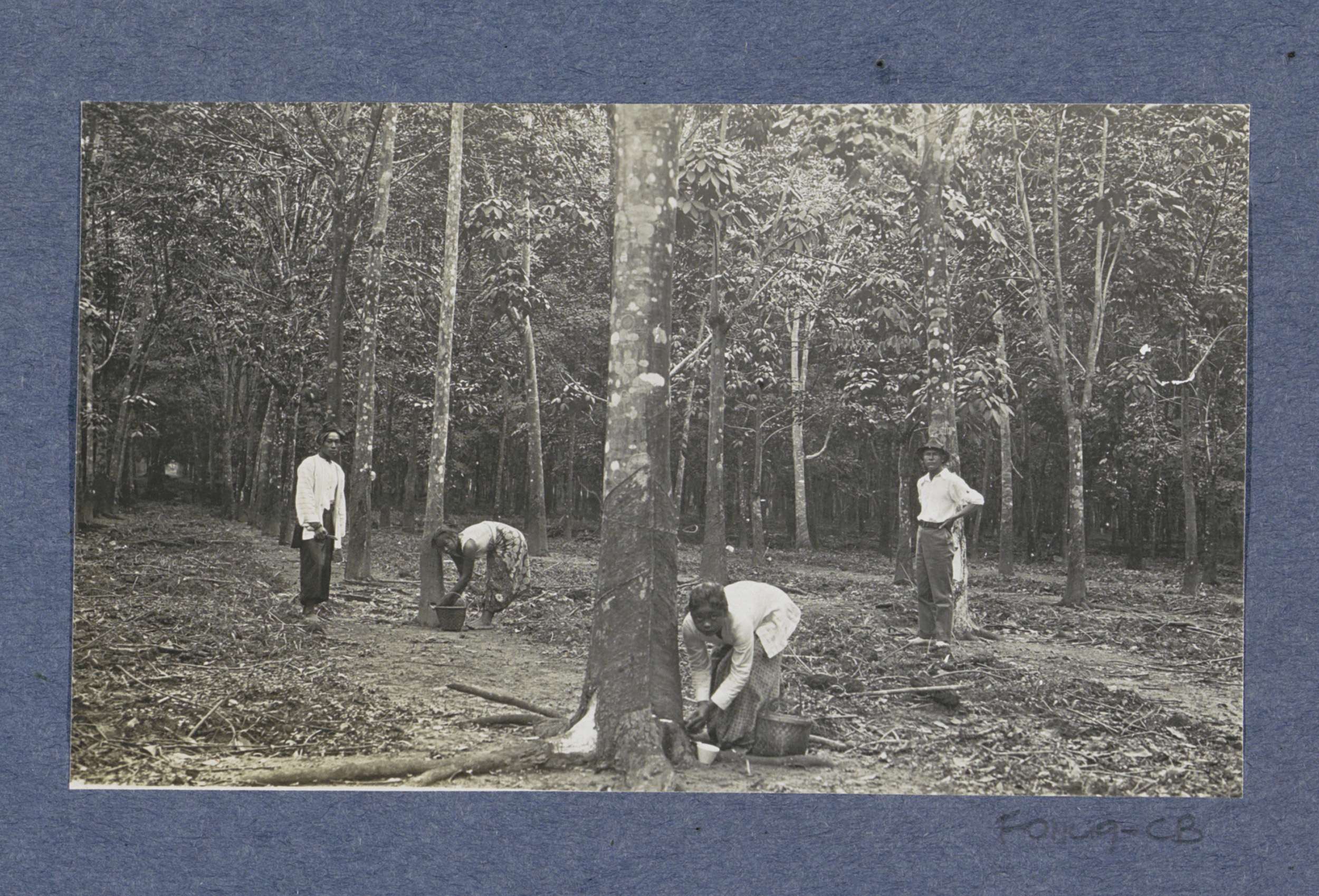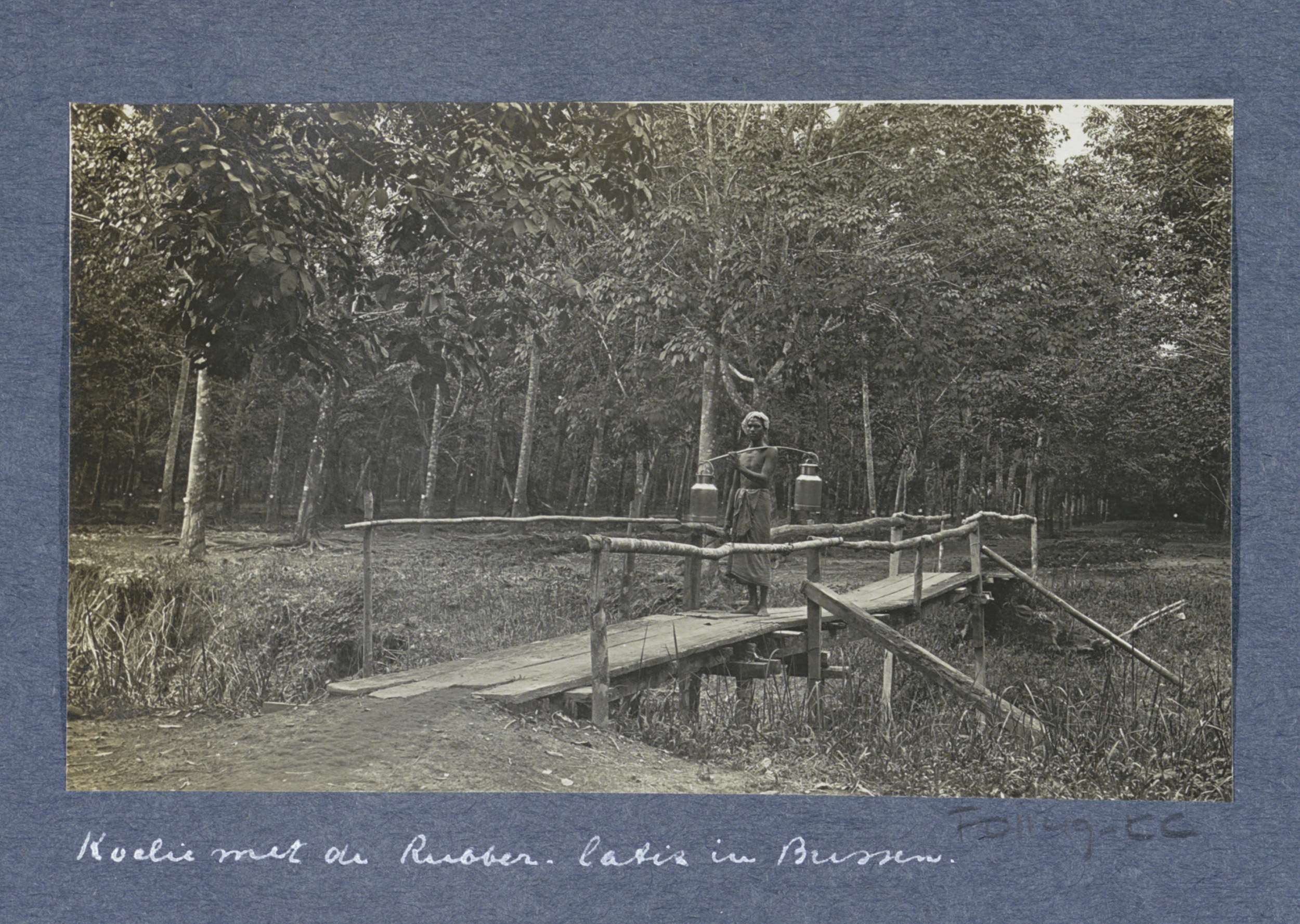 Contractarbeider draagt latex (rubbersap) in bussen ...