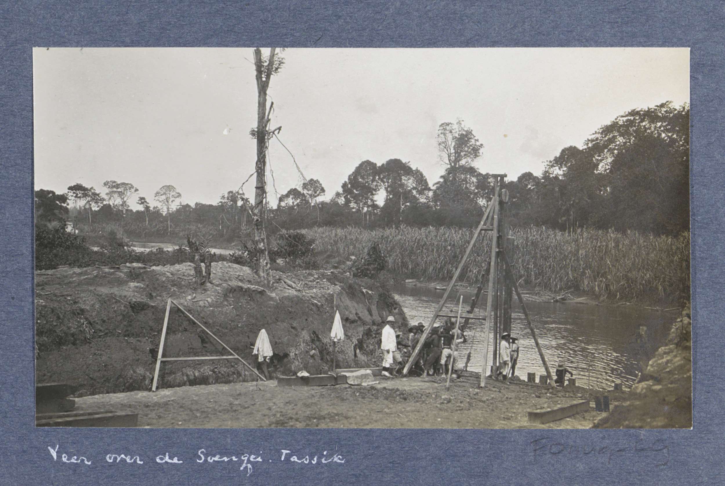 Mannen bij een veer over de Soengei Tassikrivier