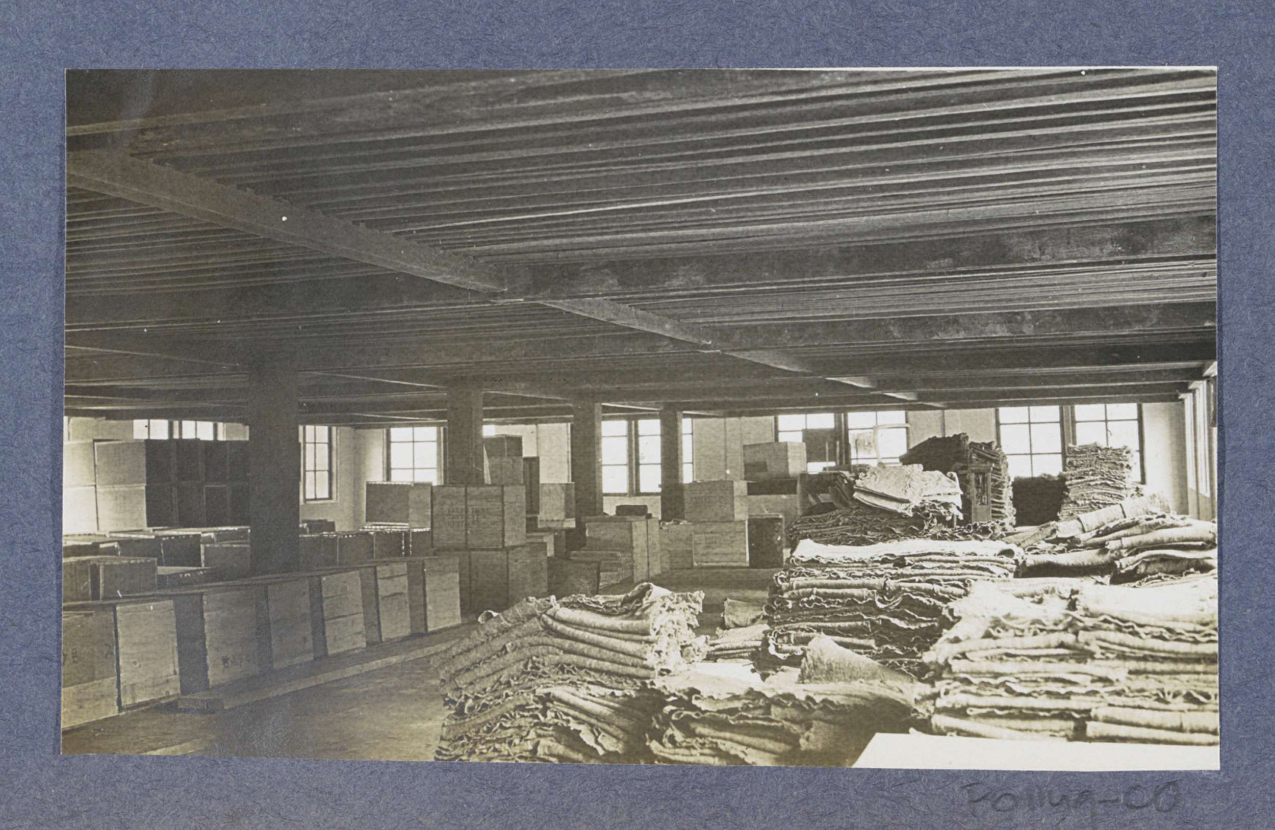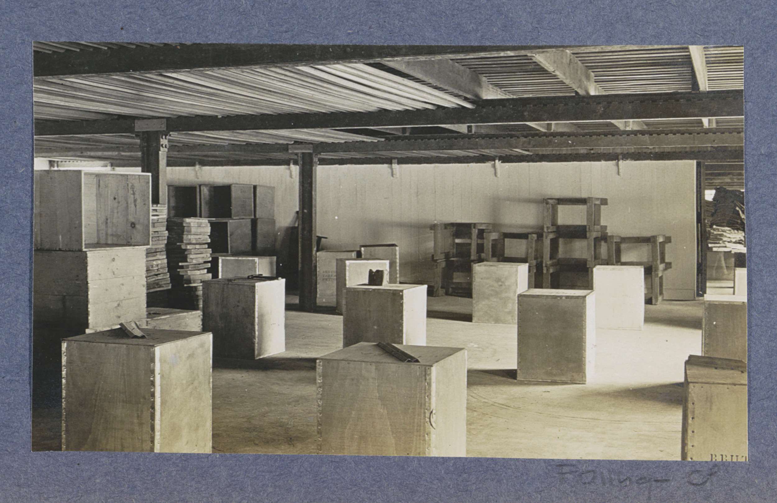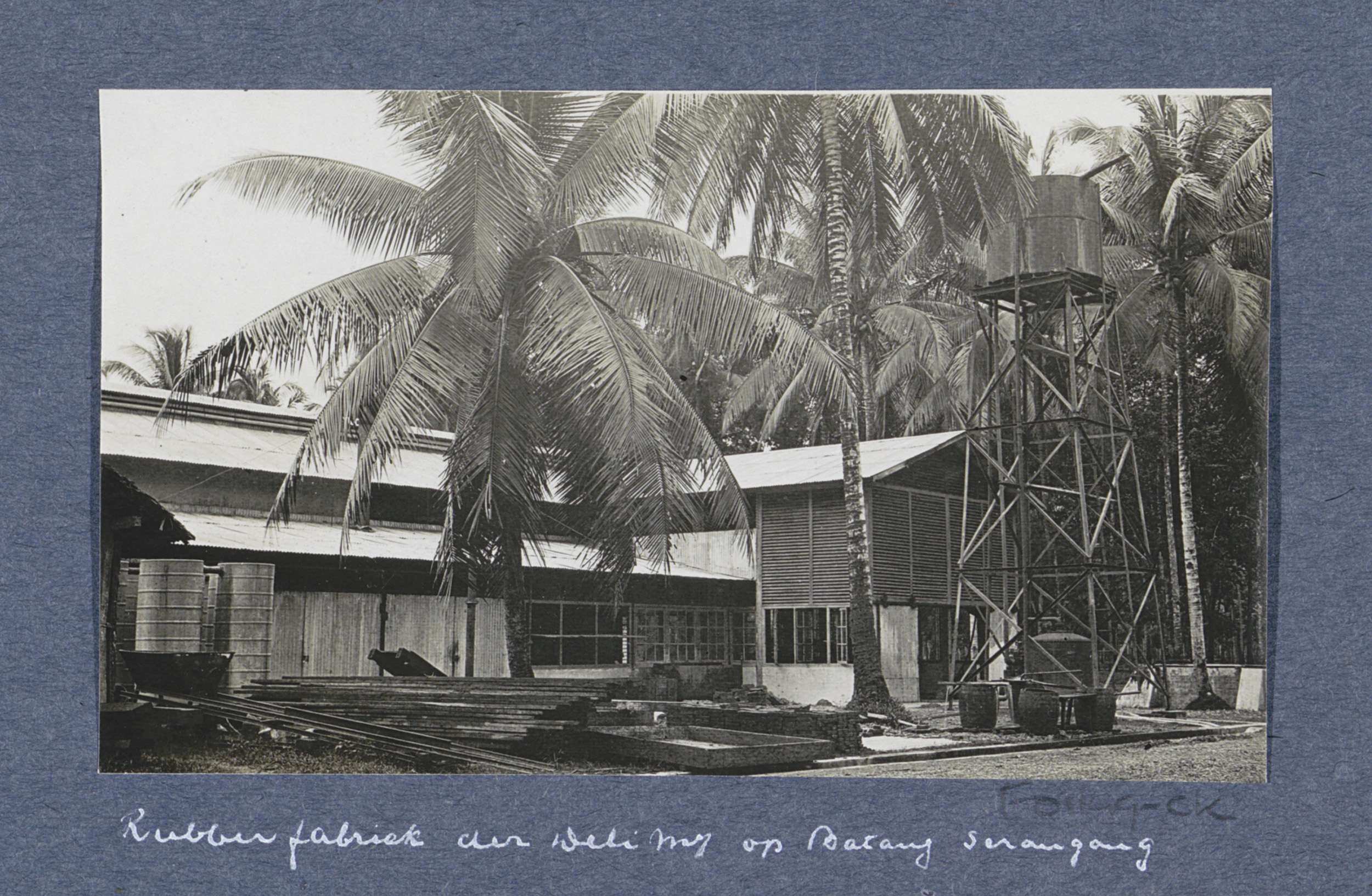 Schuur met rubber in kisten op Sumatra