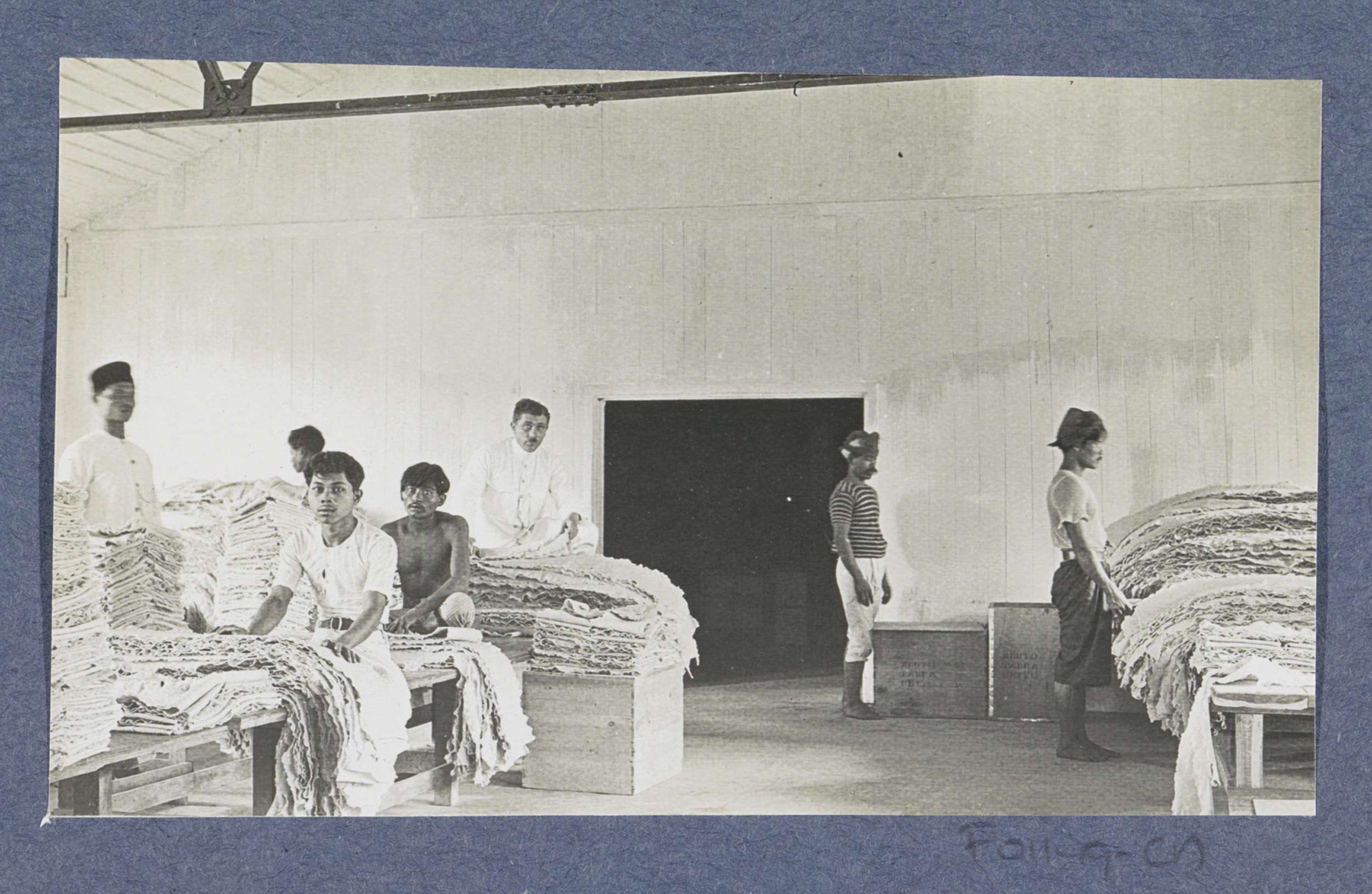 Schuur met gesorteerd rubber op Sumatra