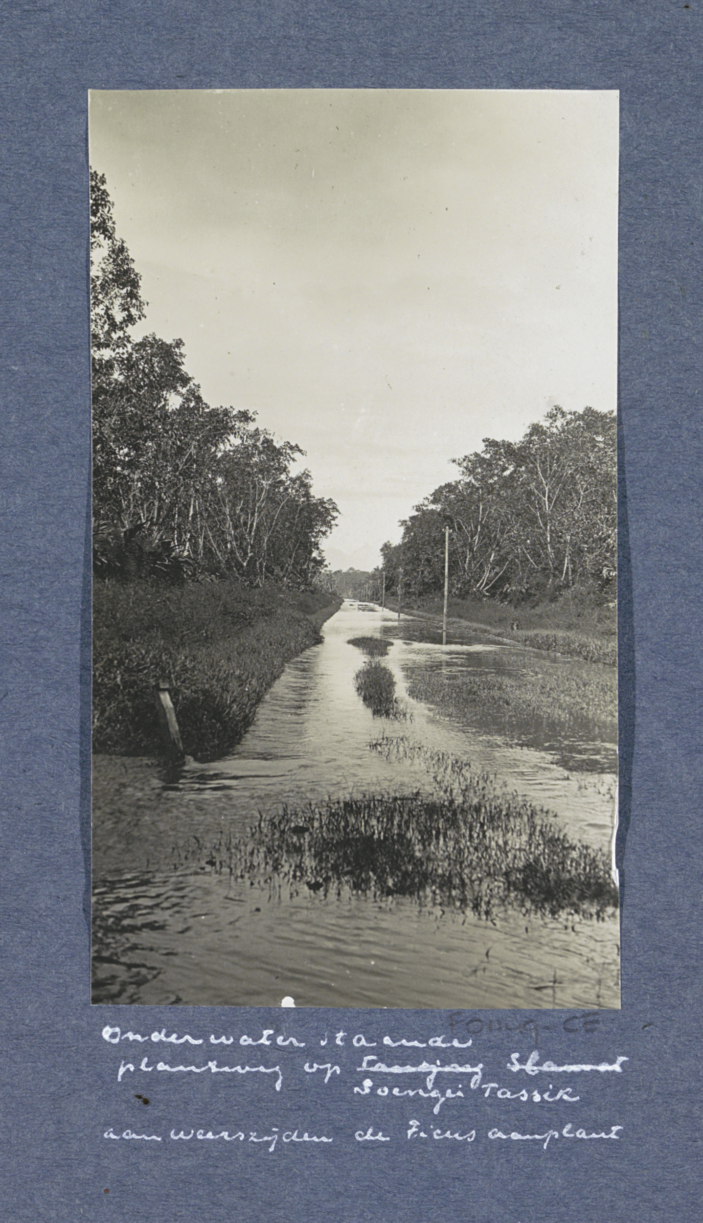 Ondergelopen plantweg van plantage Soengei Tassik op...