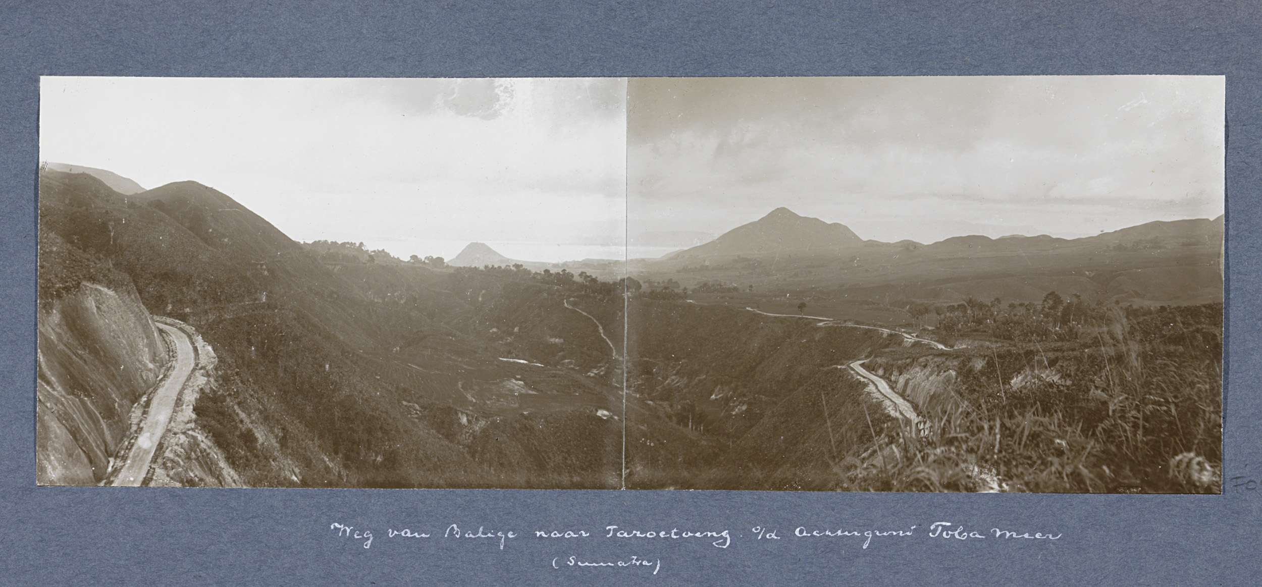 Gezicht op de weg van Balige naar Taroetoeng, op de ...