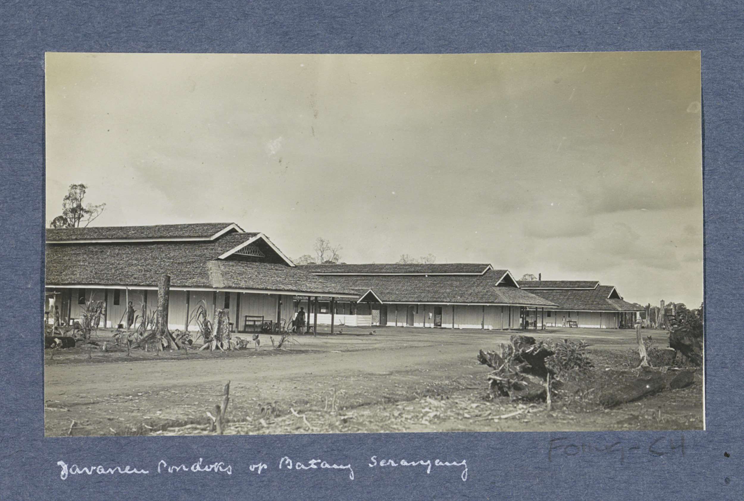 Exterieur van barakken (pondoks) voor Javaanse arbei...