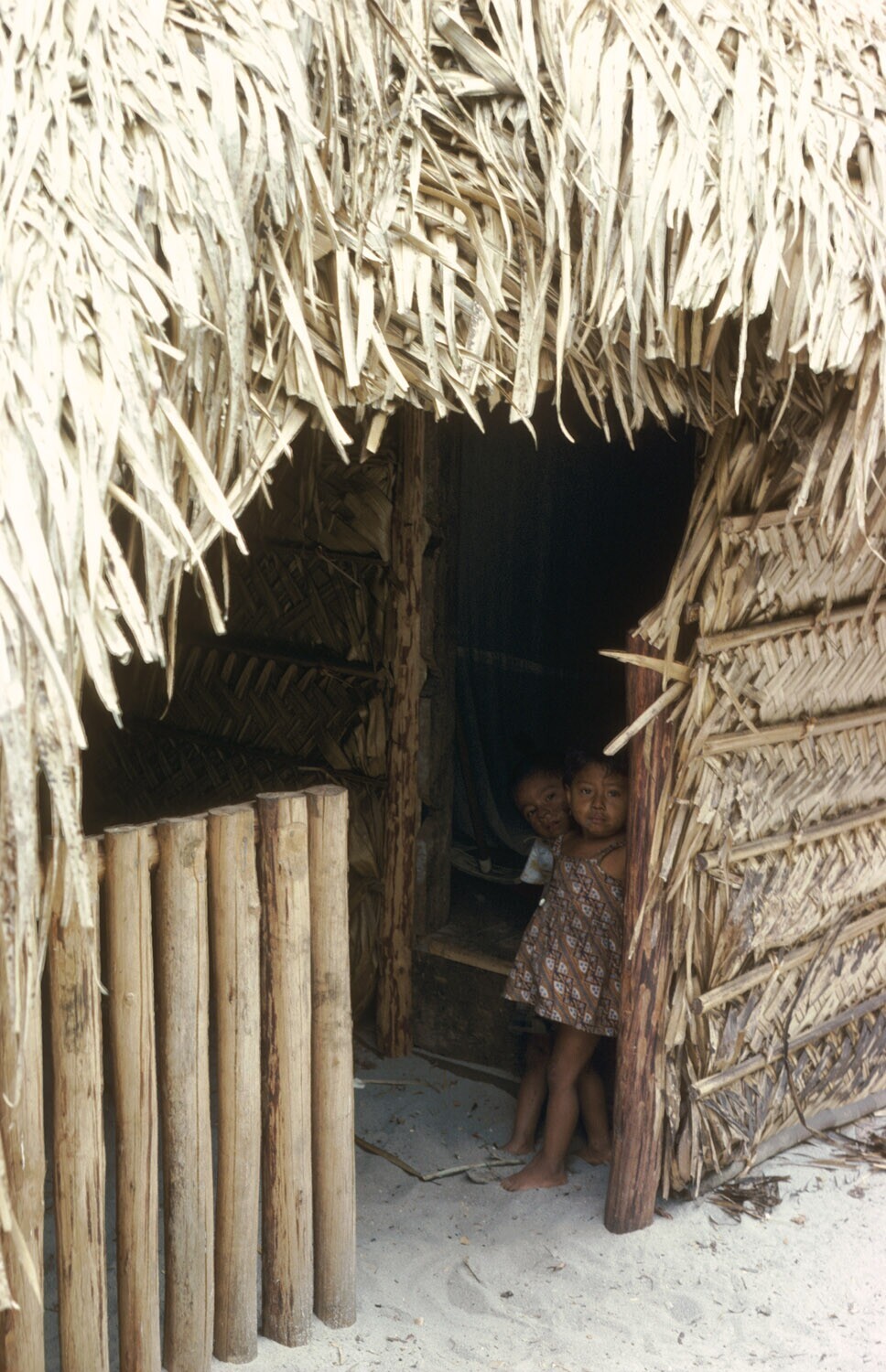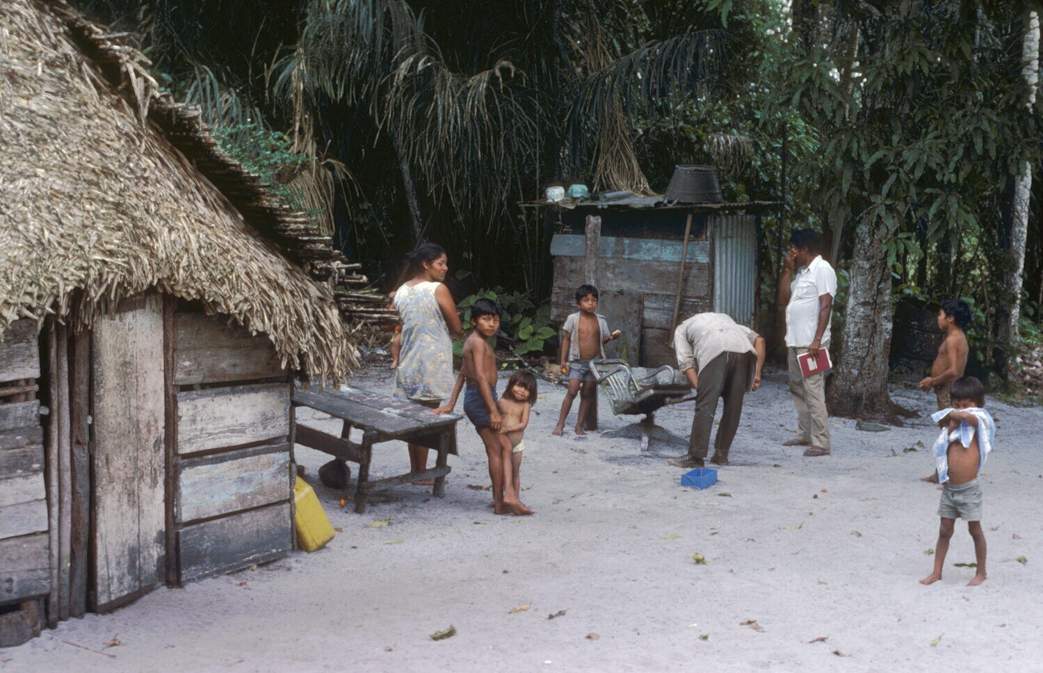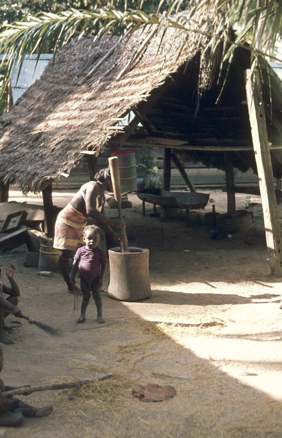 Inheemse moeder met kind op de heup in het dorp Powaka