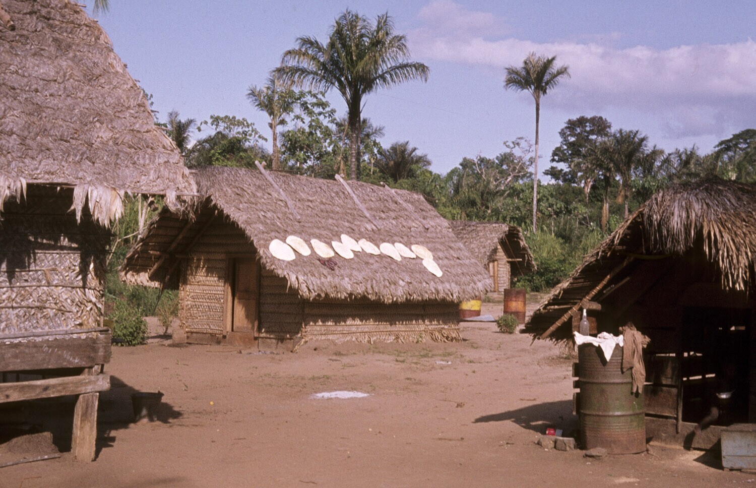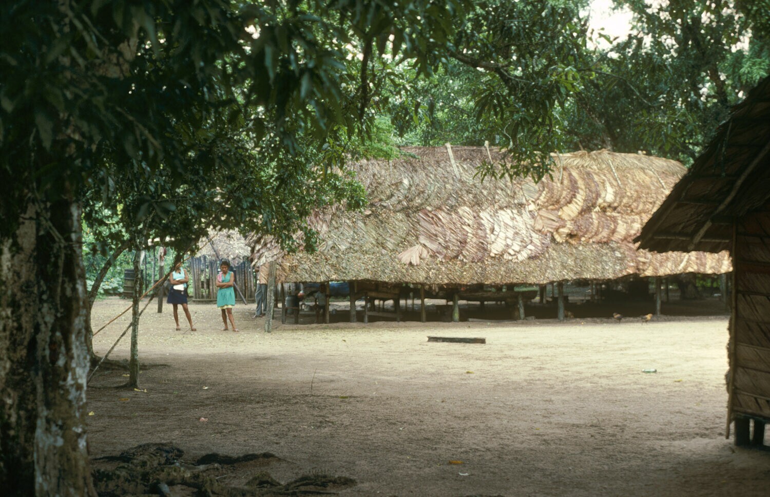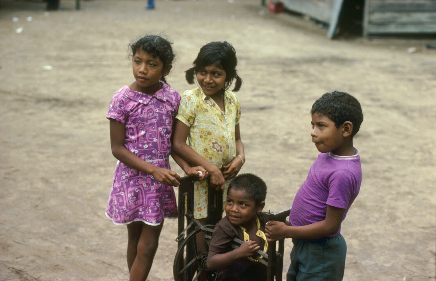 Inheemse moeder met kind op de heup in het dorp Powaka
