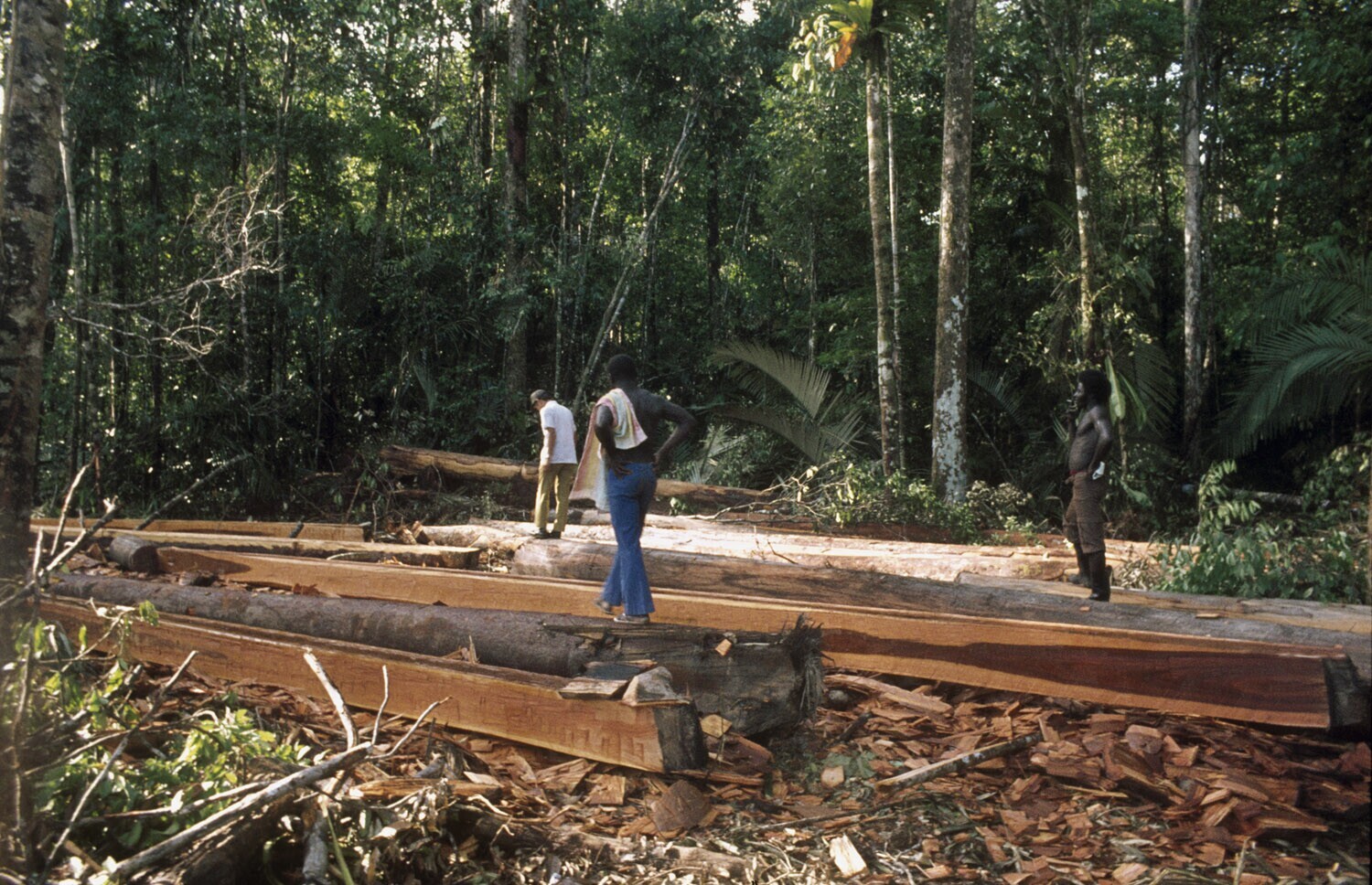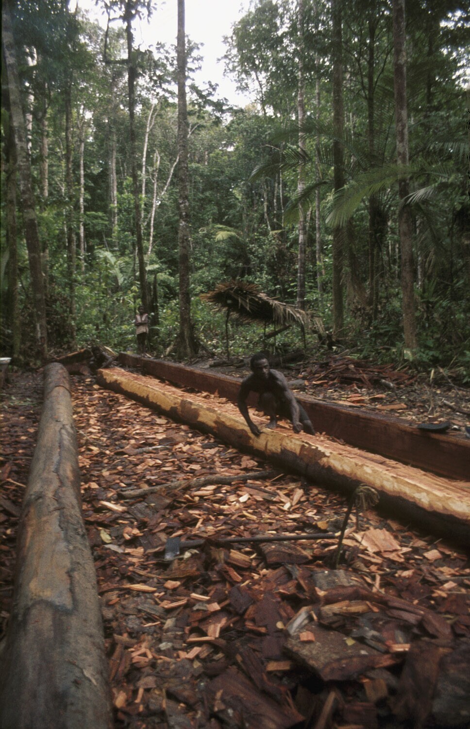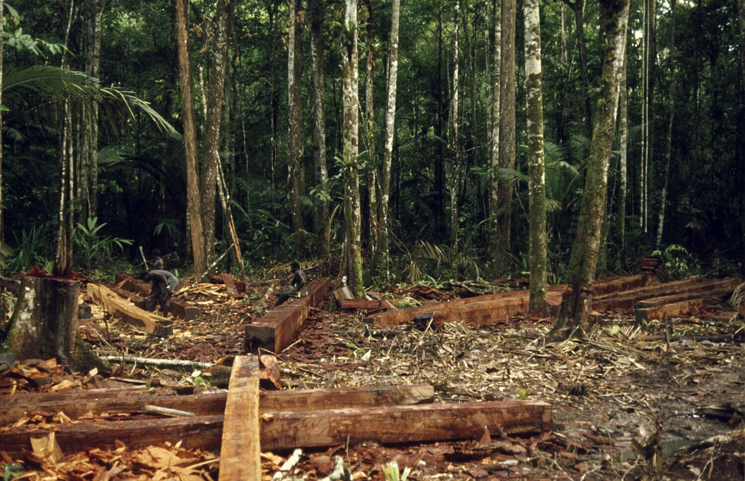 Boomstammen liggen klaar om met de hand verwerkt te ...