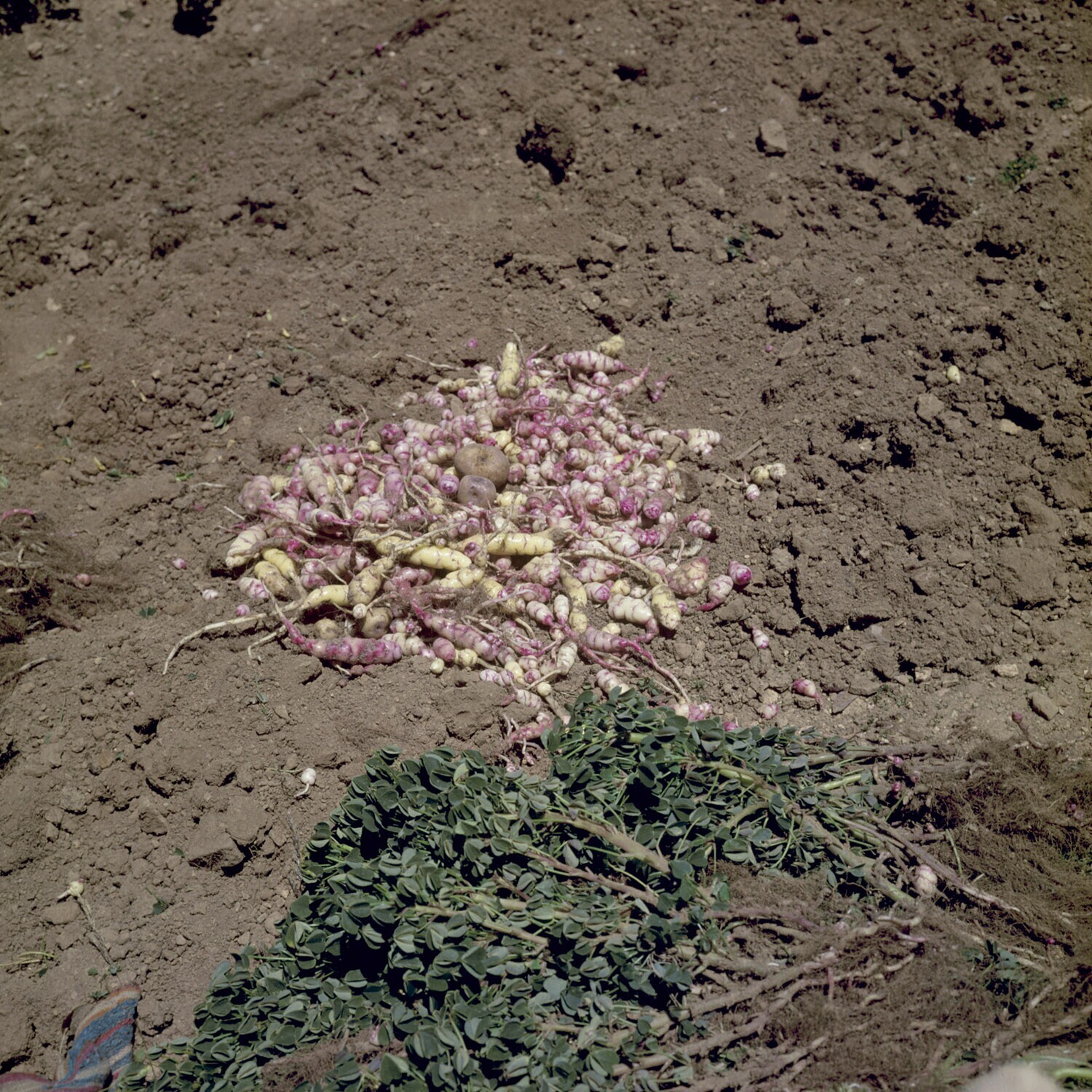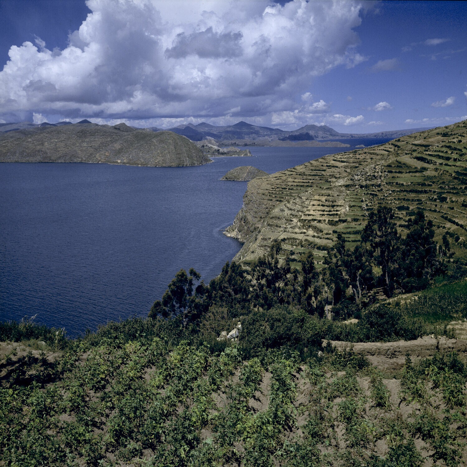Copacabana . Aanplant van yuca op terrassenl angs he...