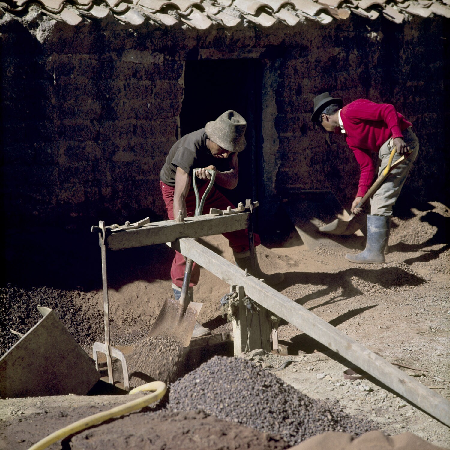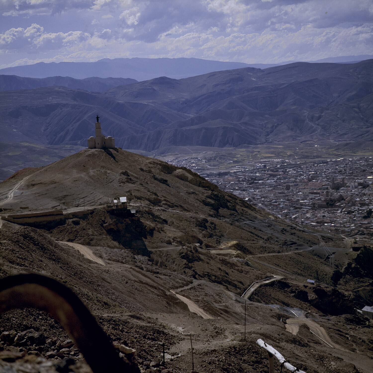 De aanvoer van mijnwerkers op de mijn te Potosi.