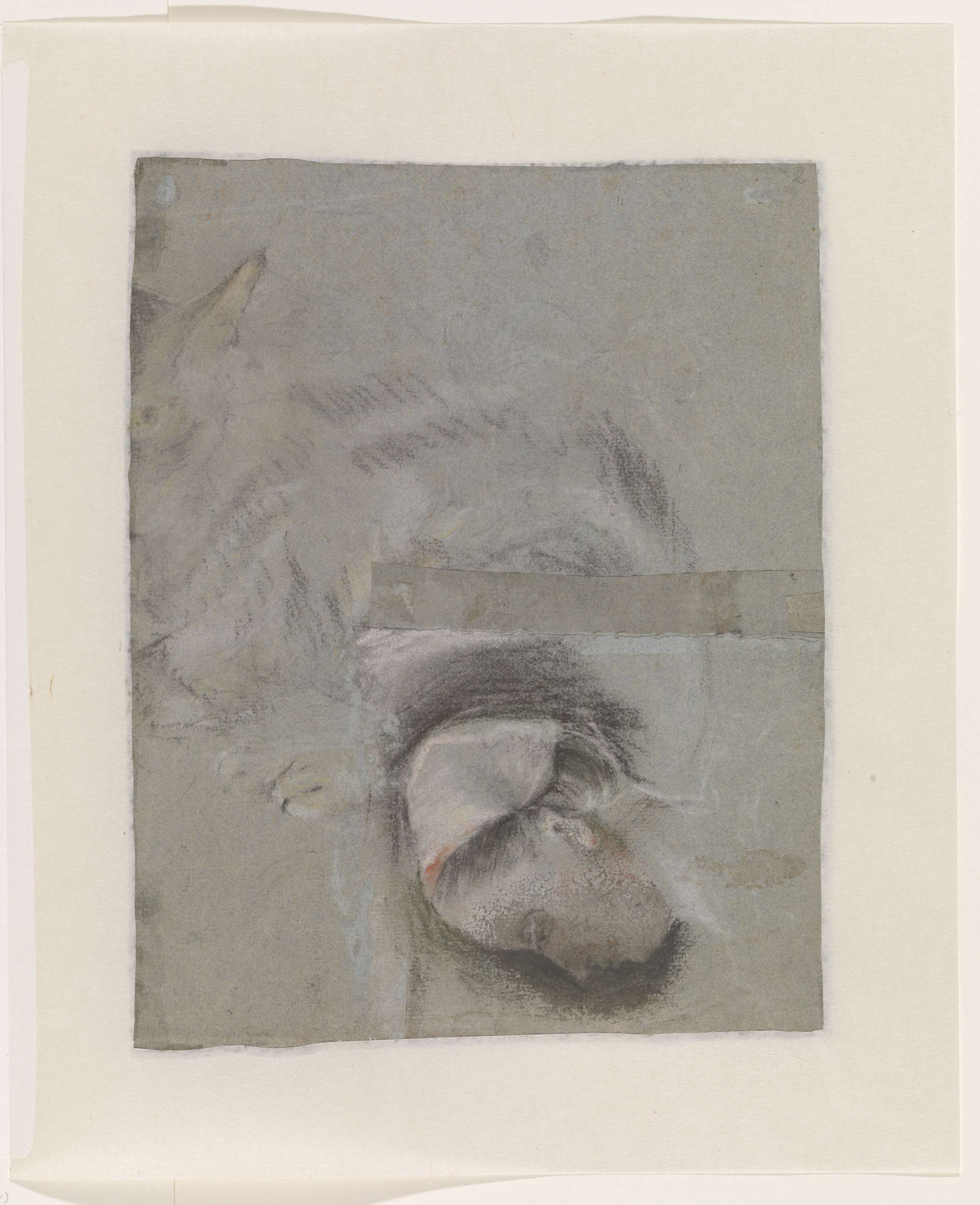 Kat, en, op een ingezet stuk papier, een vrouwenhoof...