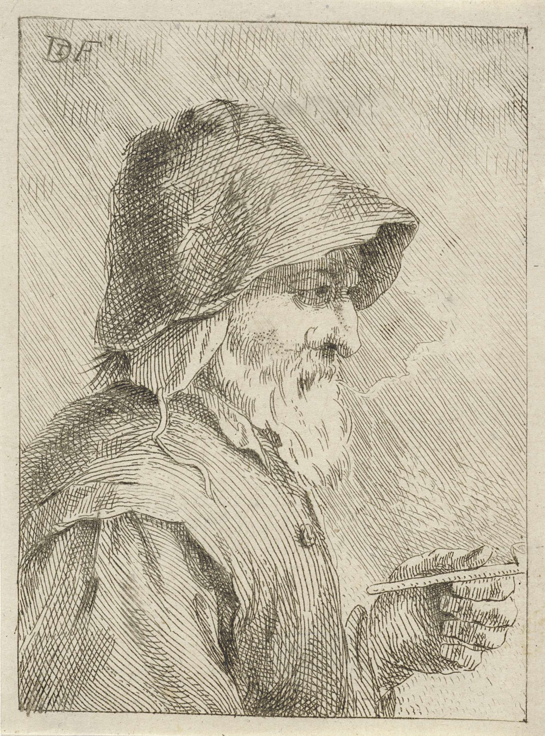 Man met een pijp in zijn linkerhand